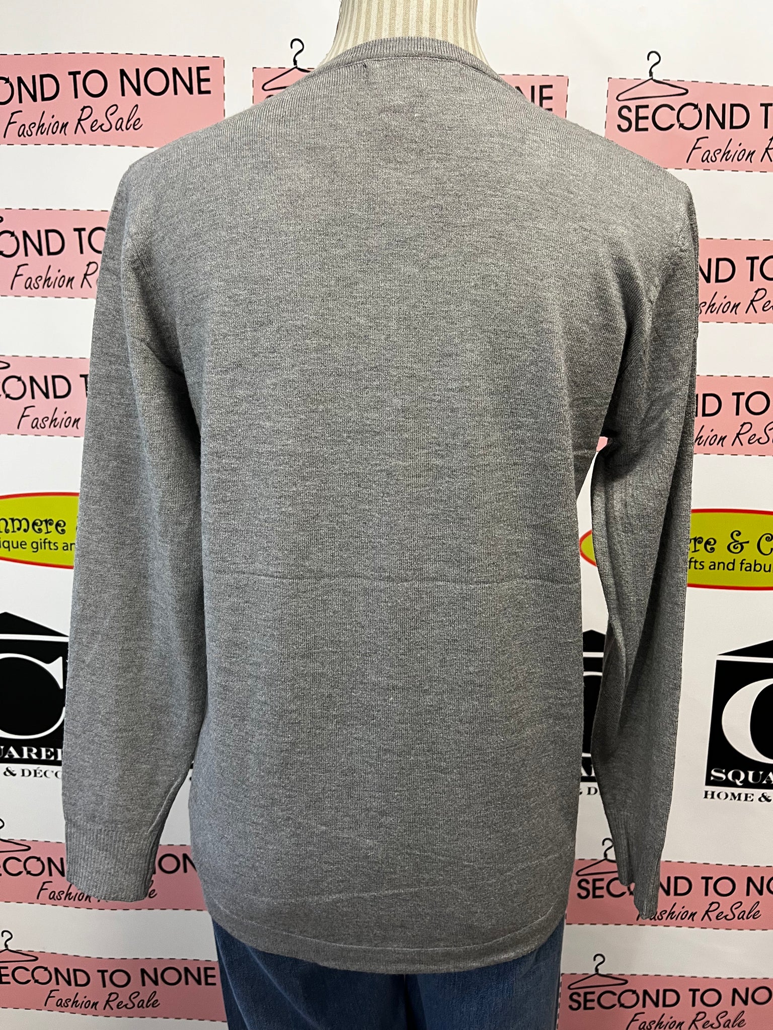 This grey long sleeve top brings sparkle to your everyday look with its silver and black gem circle design. Made from stretchy fabric, it moves with you while adding a touch of playful shine. Perfect for adding a bit of glam to casual days or nights out.