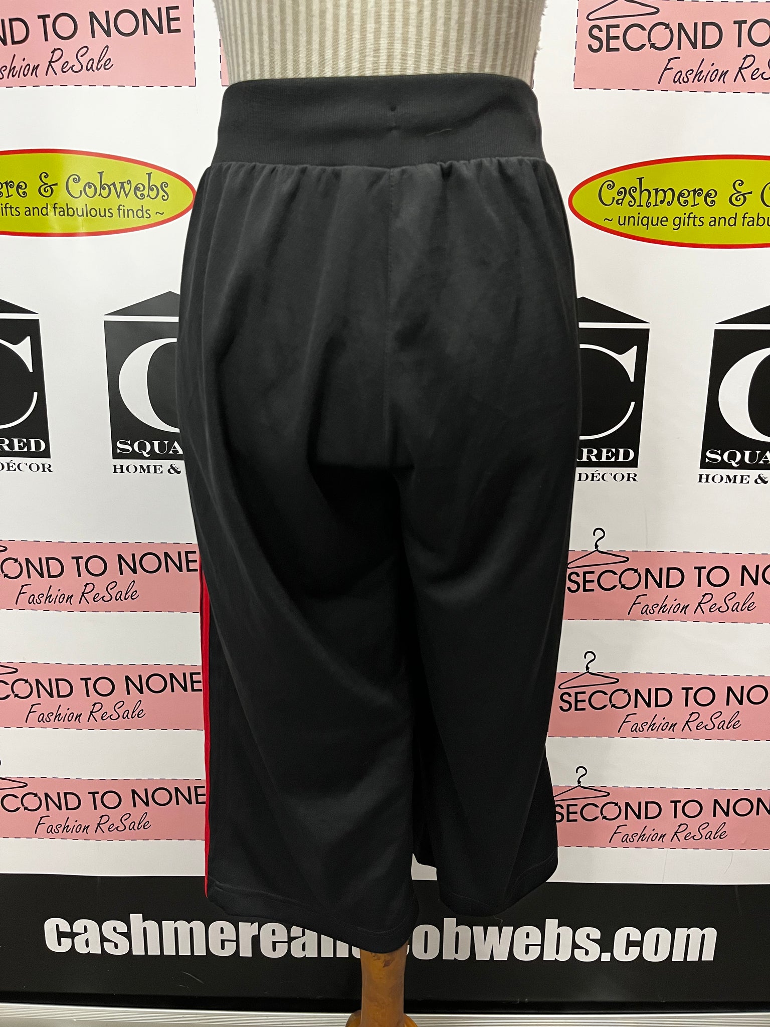Get ready to move and groove in these sleek Adidas capris! Featuring a comfortable drawstring waist that lets you dial in the perfect fit, these black bottoms keep up with your active lifestyle. The stretchy fabric moves with you through every workout, while bold red accents add a pop of sporty style. Designed for those who want function without sacrificing flair, these capris are your new go-to for the gym, studio, or casual weekend adventures.