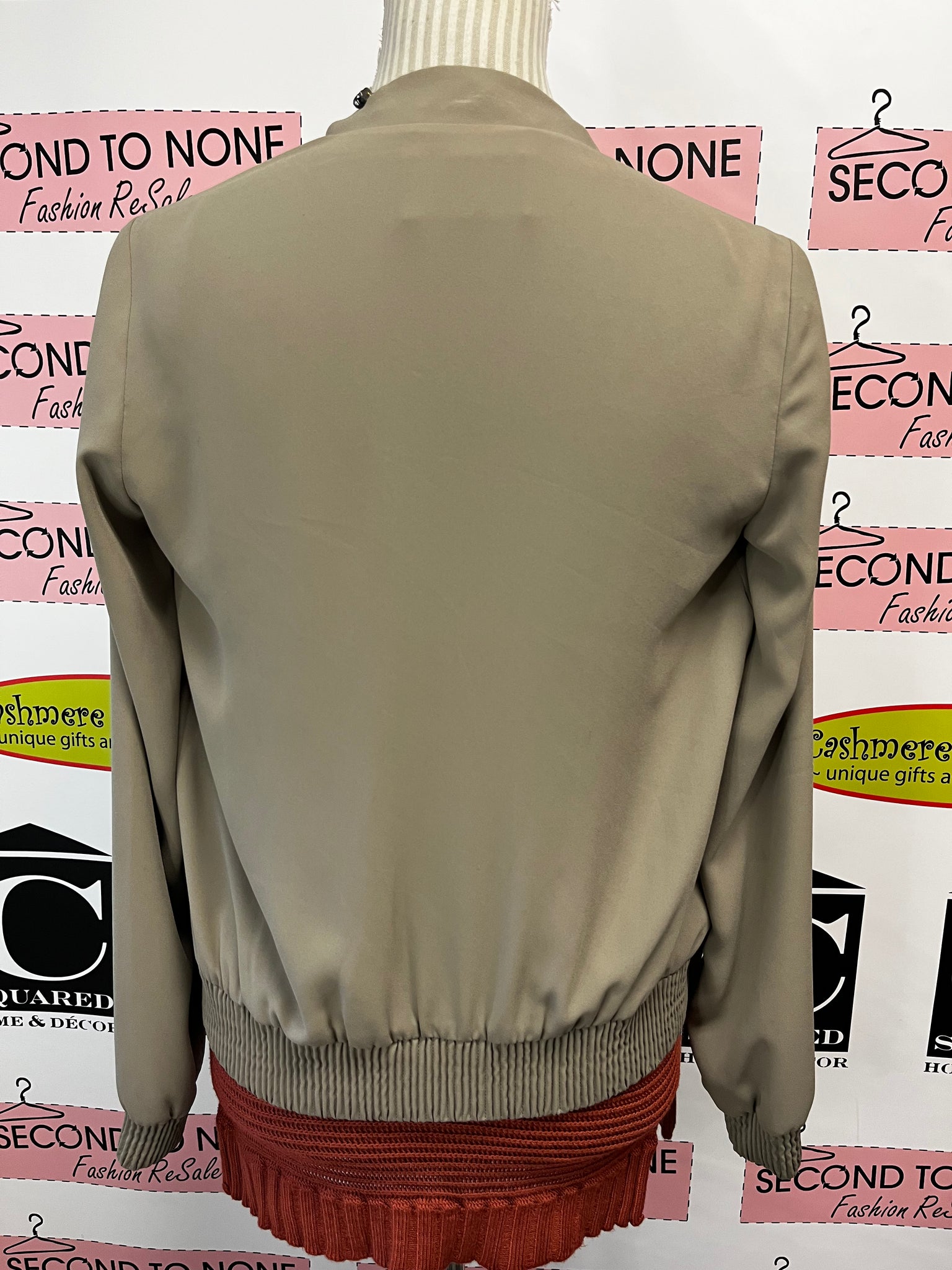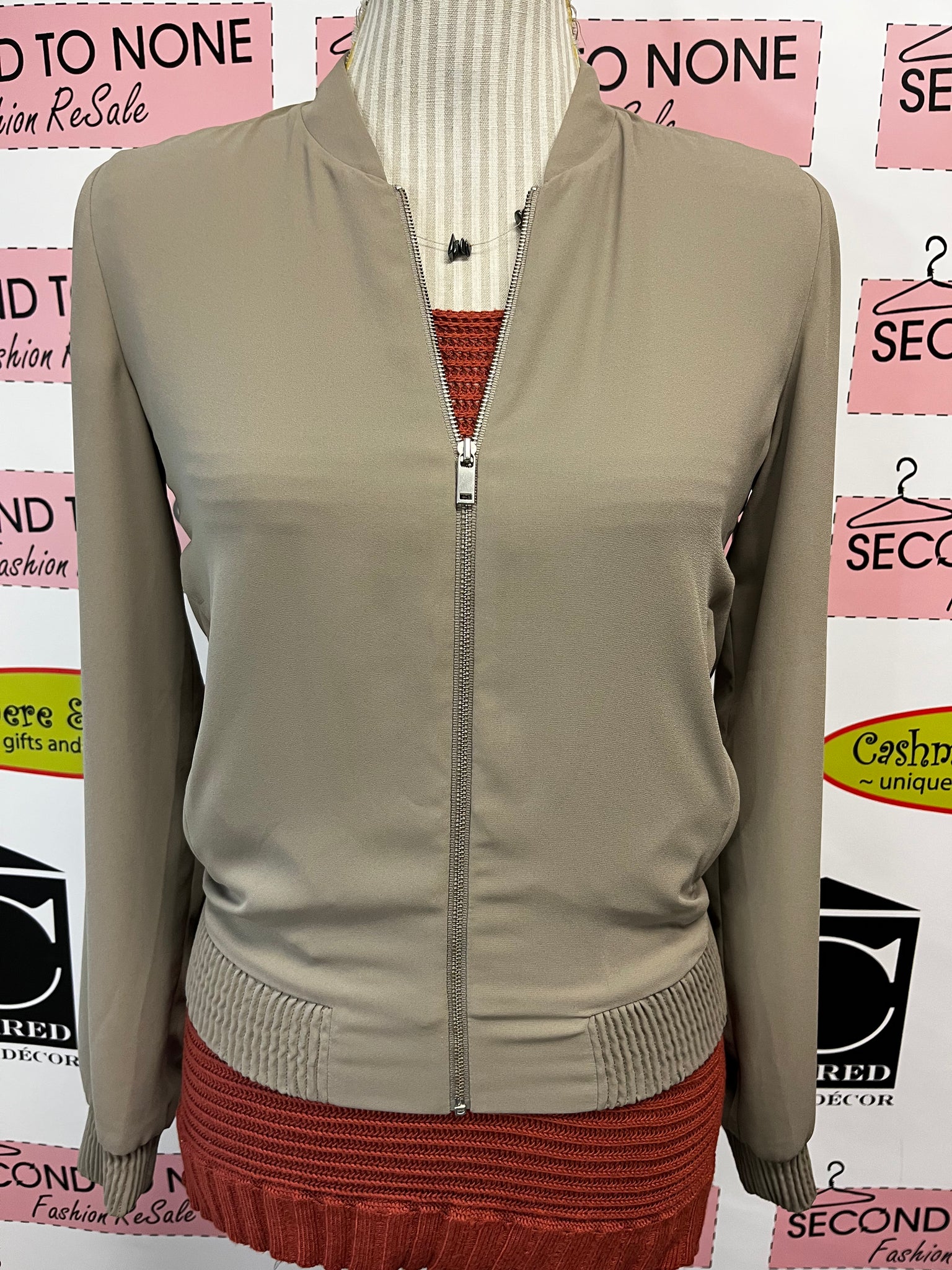 Step into effortless cool with this taupe bomber jacket by Babaton. Featuring a classic zip-up front, it’s the perfect mix of cozy and chic for those days when you want to keep it casual but still turn heads. Lightweight yet warm, this jacket is ready to become your go-to layering piece all season long. Size XXS means it fits just right for a sleek silhouette—time to zip up and zip out in style!