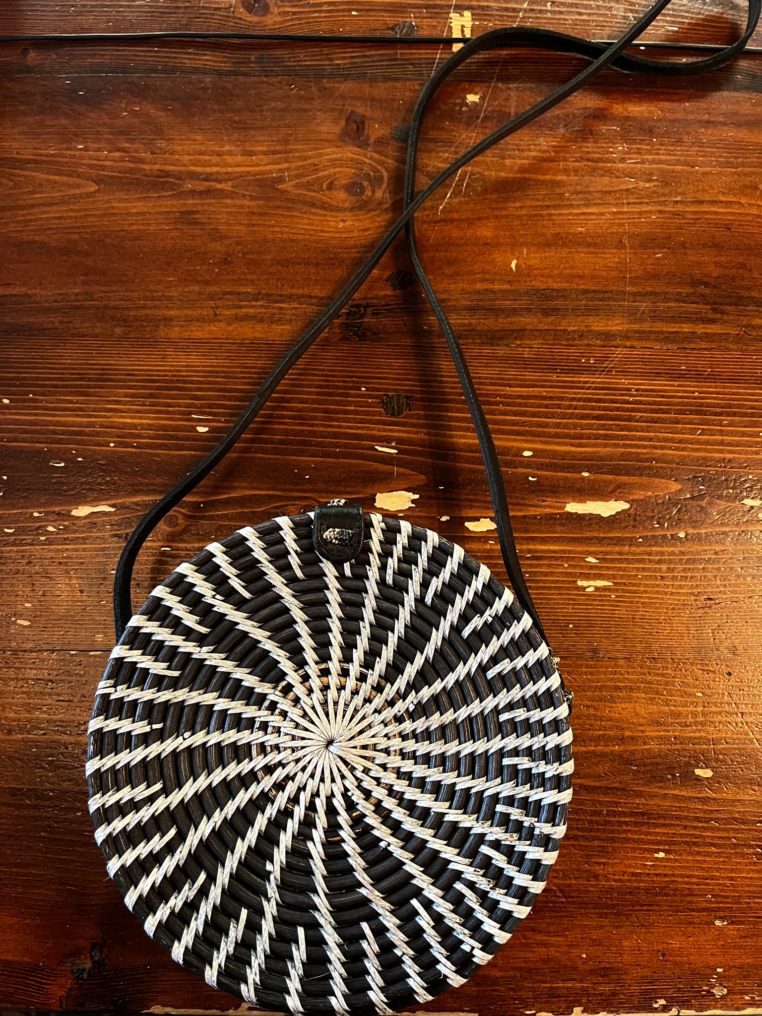 • Load image into Gallery viewer, Black & White Round Rattan Purse