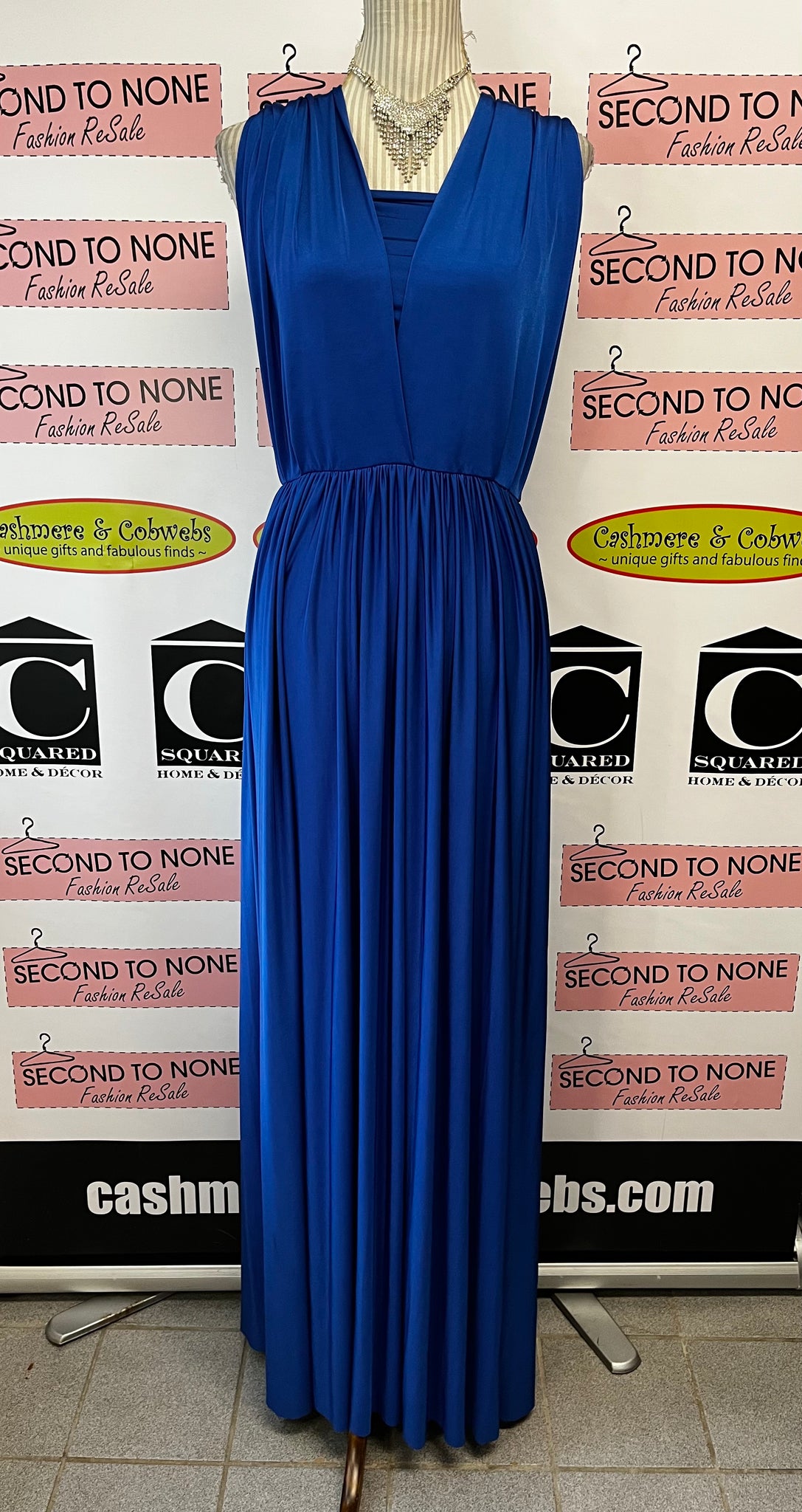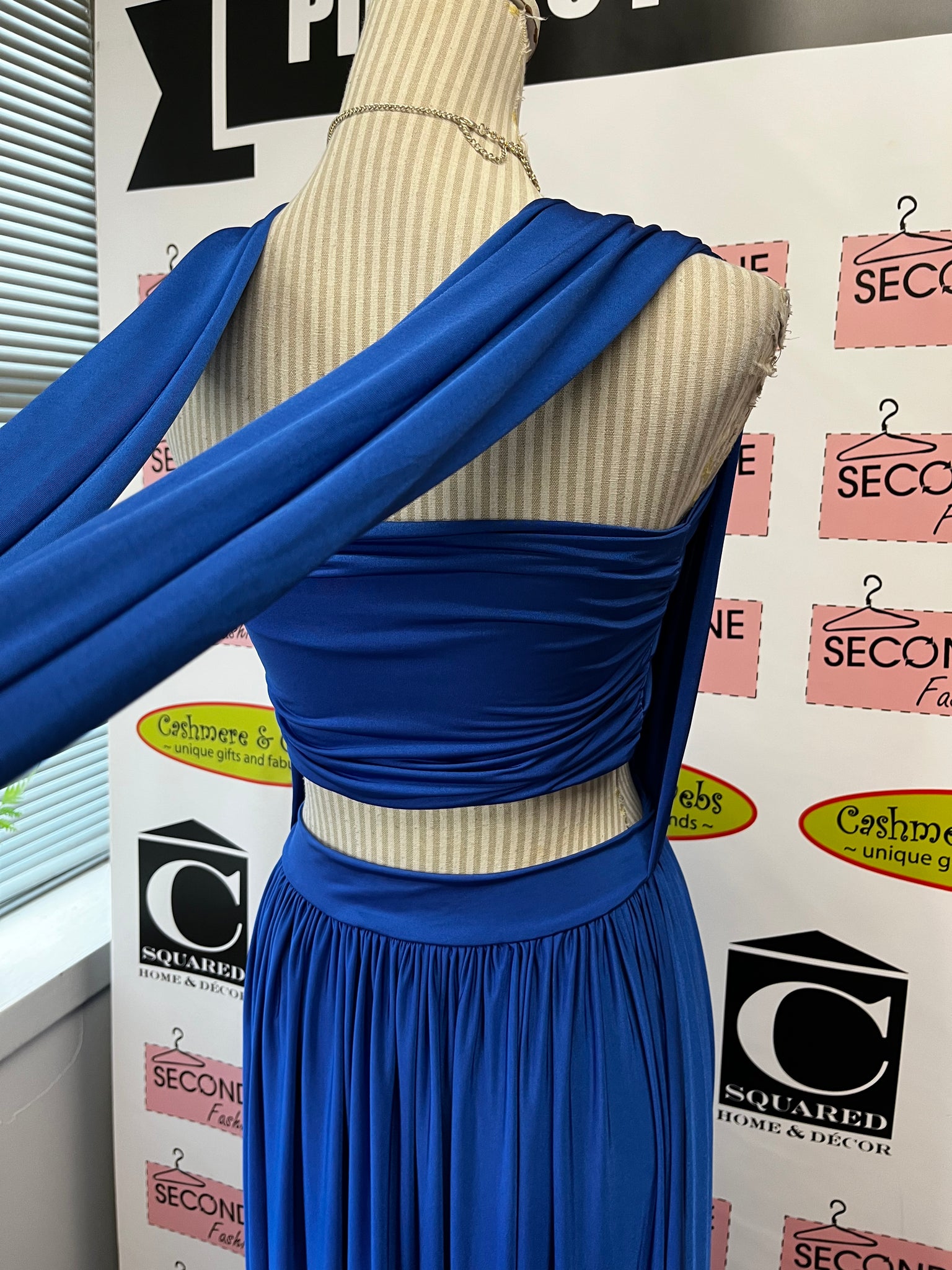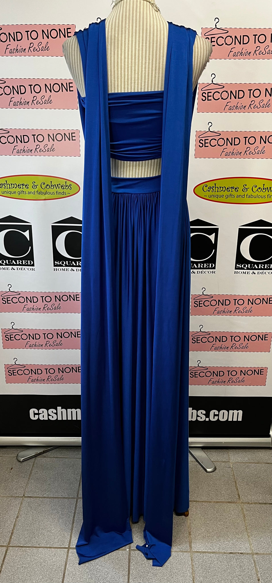 Meet your new red-carpet moment. This luxurious royal blue evening gown from Eliza & Ethan drapes your frame in sumptuous, heavyweight fabric that moves with intention. Elegant shoulder straps cascade down your back like a flowing scarf, while the long, graceful silhouette commands attention at every formal occasion. Includes a supportive bandeau top and arrives in its original packaging. Crafted by the California-based design duo, this is the gown that makes you feel absolutely unforgettable.