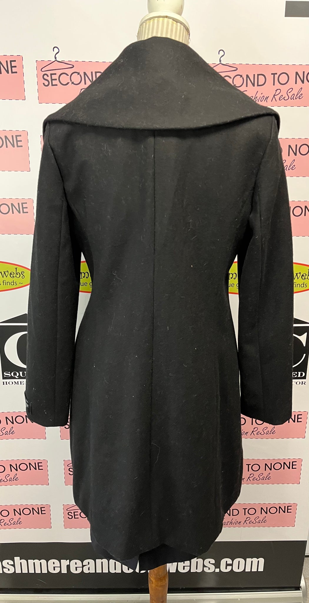 Wrap yourself in understated elegance with this stunning Le Chateau wool blend dress coat. The luxurious black fabric drapes beautifully, while the crisp button front and wide collar create a polished silhouette perfect for elevating any outfit. Long sleeves and full lining ensure comfort and warmth through chilly seasons. A timeless piece that transitions effortlessly from office to evening, this coat is your new wardrobe essential.