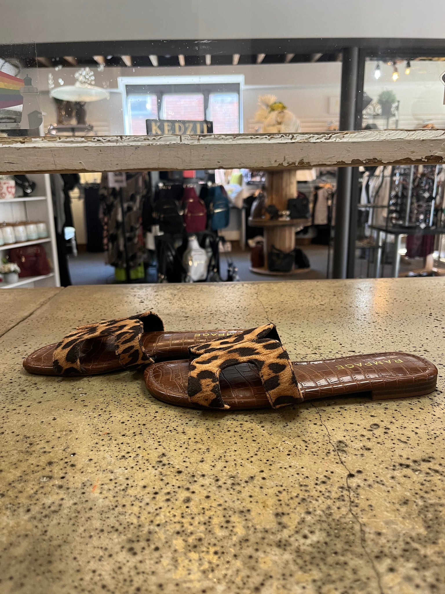 Step into style with these barely worn Leopard Print Sandals! The H-band strap is a sophisticated style, while the faux snakeskin sole that will peak through adds a unique touch. The soft leopard print strap and flirty round open toe make these sandals both fashionable and fun! Brand: Rampage. Size 6.5.