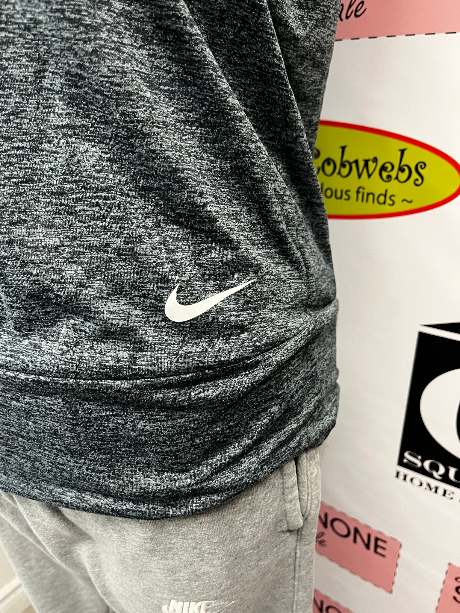 Stay cool and comfy in the Nike Dri-Fit Tank Top, designed with a stylish dark grey marl pattern and a fun strappy back. Made from stretchy, breathable Dri-Fit material, this activewear piece moves with you, keeping sweat at bay while you crush your workout. Perfect for adding a playful twist to your sporty essentials!