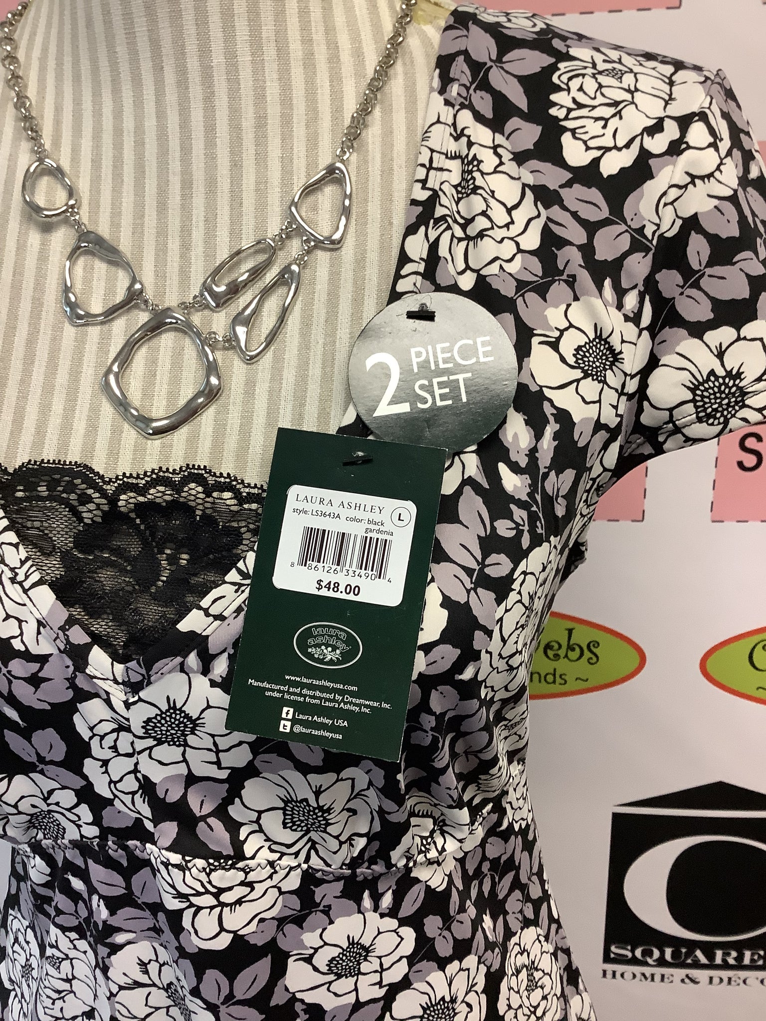 NWT Laura Ashley 2 Pc Black Gardenia Set (Size L)
