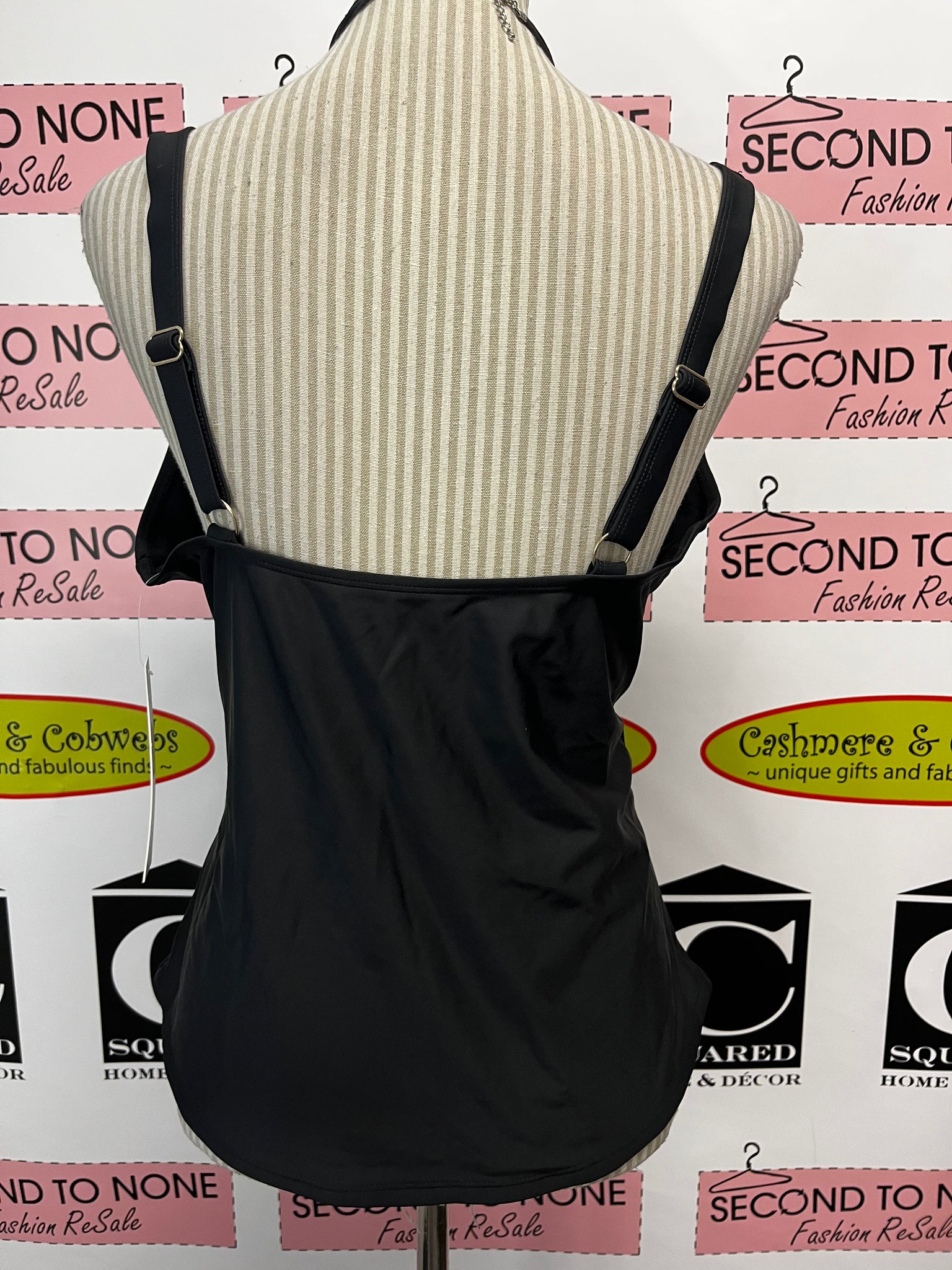 Make a splash with this NWT Nicole Miller tankini top in sleek black! Designed with fun side ruching, adjustable straps, and structured cups, it promises a comfy, flattering fit that’s ready for any sunny adventure. Dive in and feel fabulous!