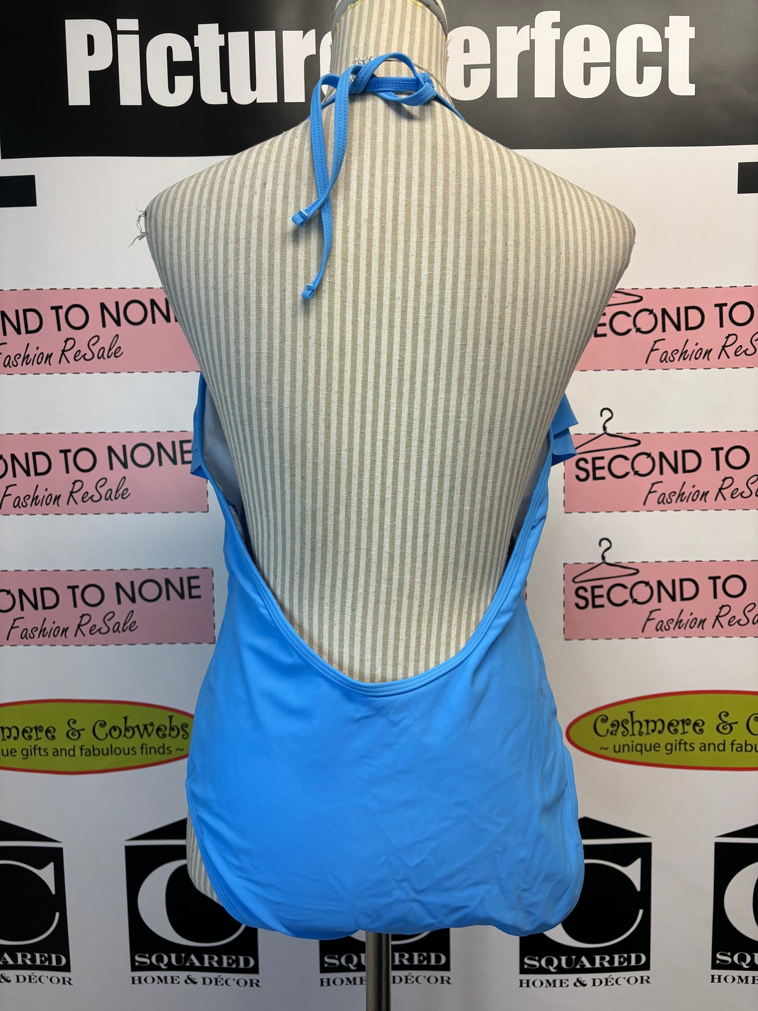 Stay chic in the Ocean Blue Ruffled One Piece Swimsuit. With a soft, white lining, padded cups, and halter straps, this swimsuit is perfect for your next vacation, cruise, or pool day. The ruffled layered detailing adds a touch of fun and the slip-on design makes it easy to stay cool. Pair with a cute cover up and sun hat for summertime vibes.