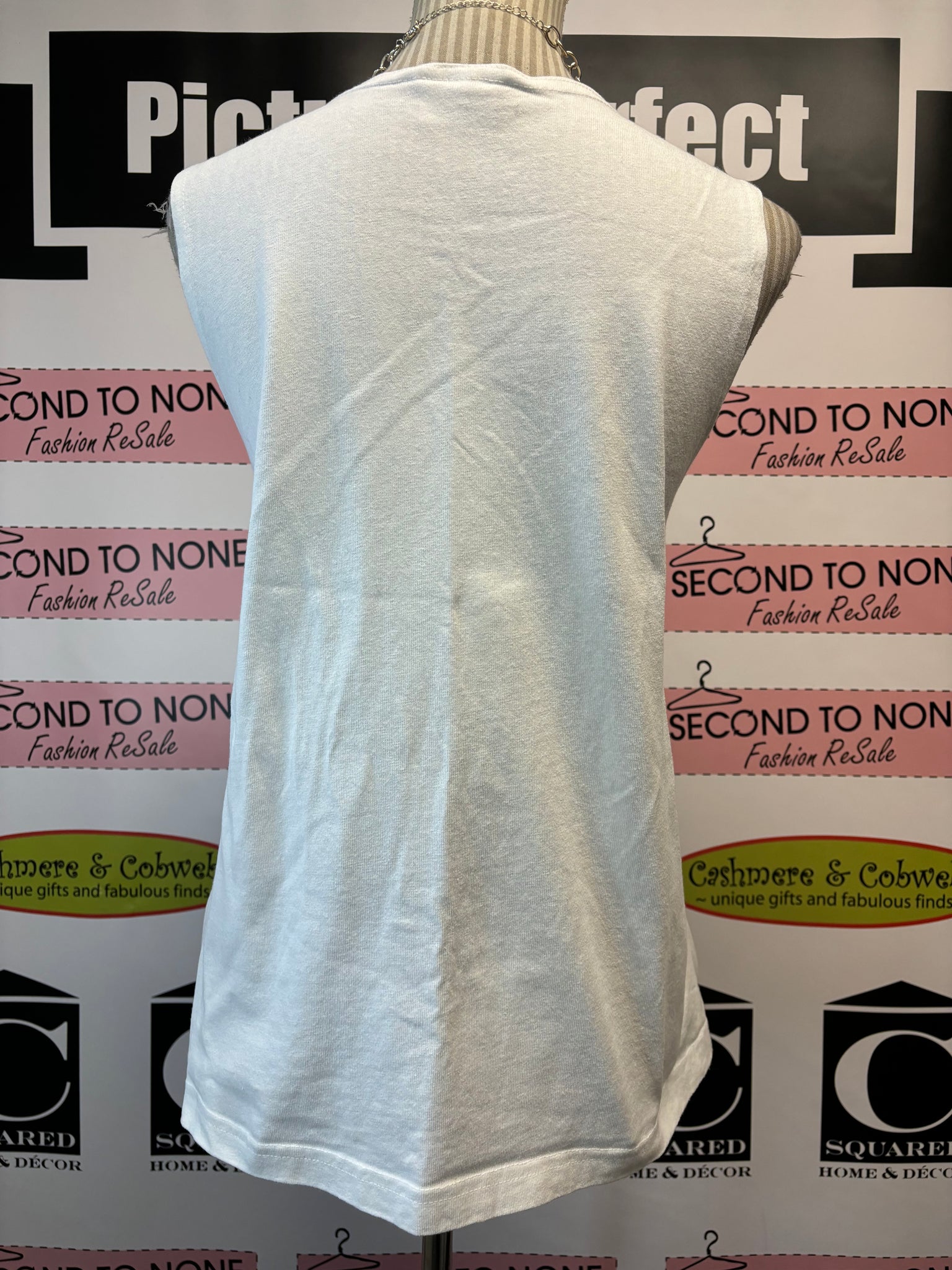 Introducing the Pacific Cotton Tank, a versatile and stylish addition to your wardrobe. Made from long and thick material, this pure white tank is perfect for the beach or vacation. The impeccable look and scoop neck make it a must-have item, and it pairs perfectly with an animal print jacket or bright jewelry.