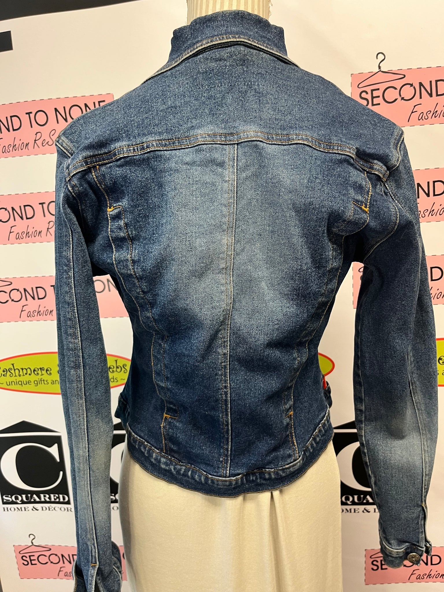 Add some classic cool to your wardrobe with the Stone Denim Jacket. Perfect for everyday wear, this size S/5 jacket features a timeless blue color and trendy stonewashed finish. With long sleeves and a cropped hem fit, this jacket is a versatile addition to any outfit.