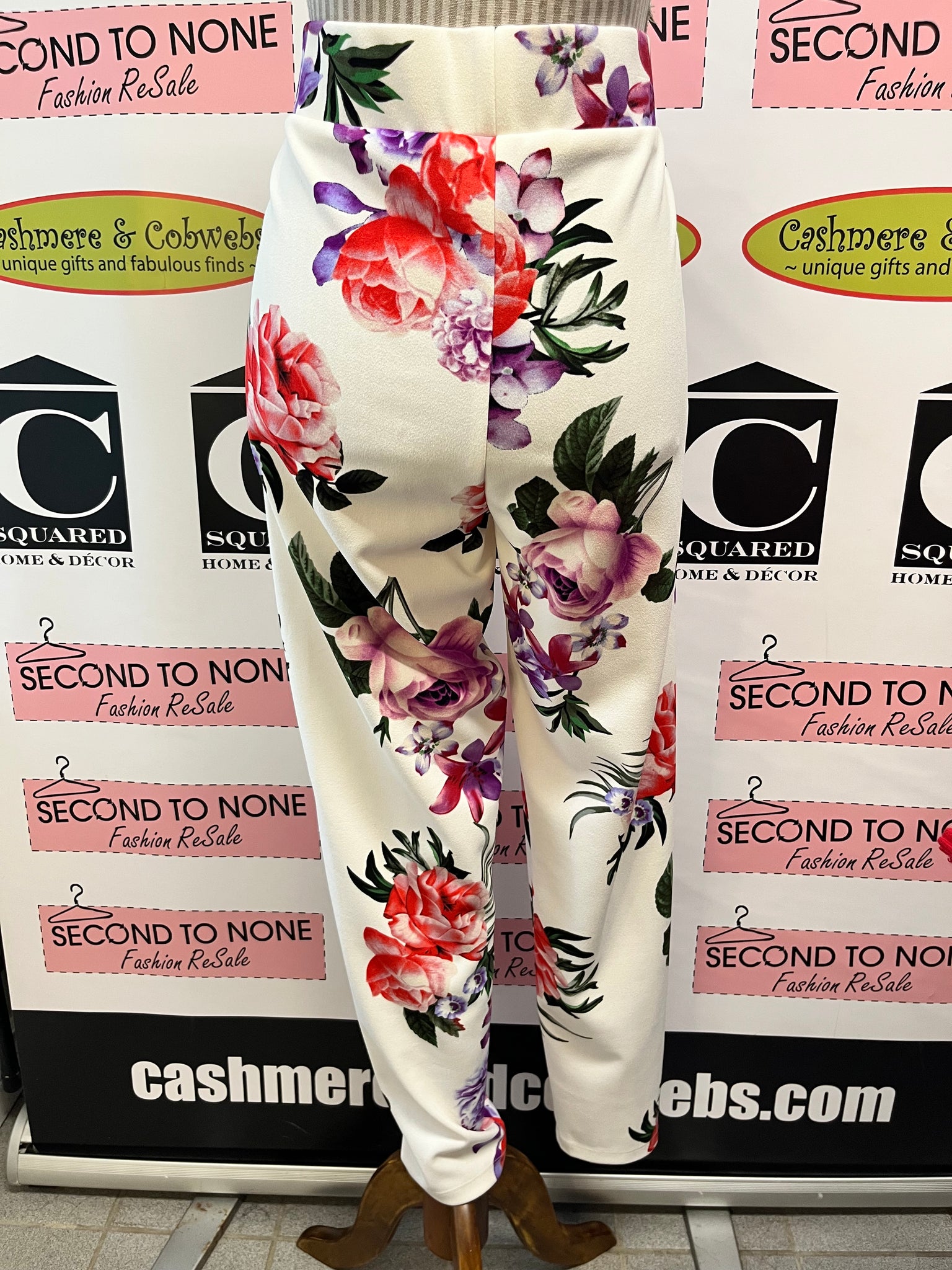 Step into springtime fun with these White Floral Pants from Vin Rouge Fashions. Featuring a lively pink and red floral pattern on a crisp white background, their tapered leg fit flatters every step. The wide elastic pull-on waist adds comfort and ease, making these pants your go-to for effortless style. Proudly made in Canada, they’re perfect for brightening your wardrobe with a splash of playful charm.