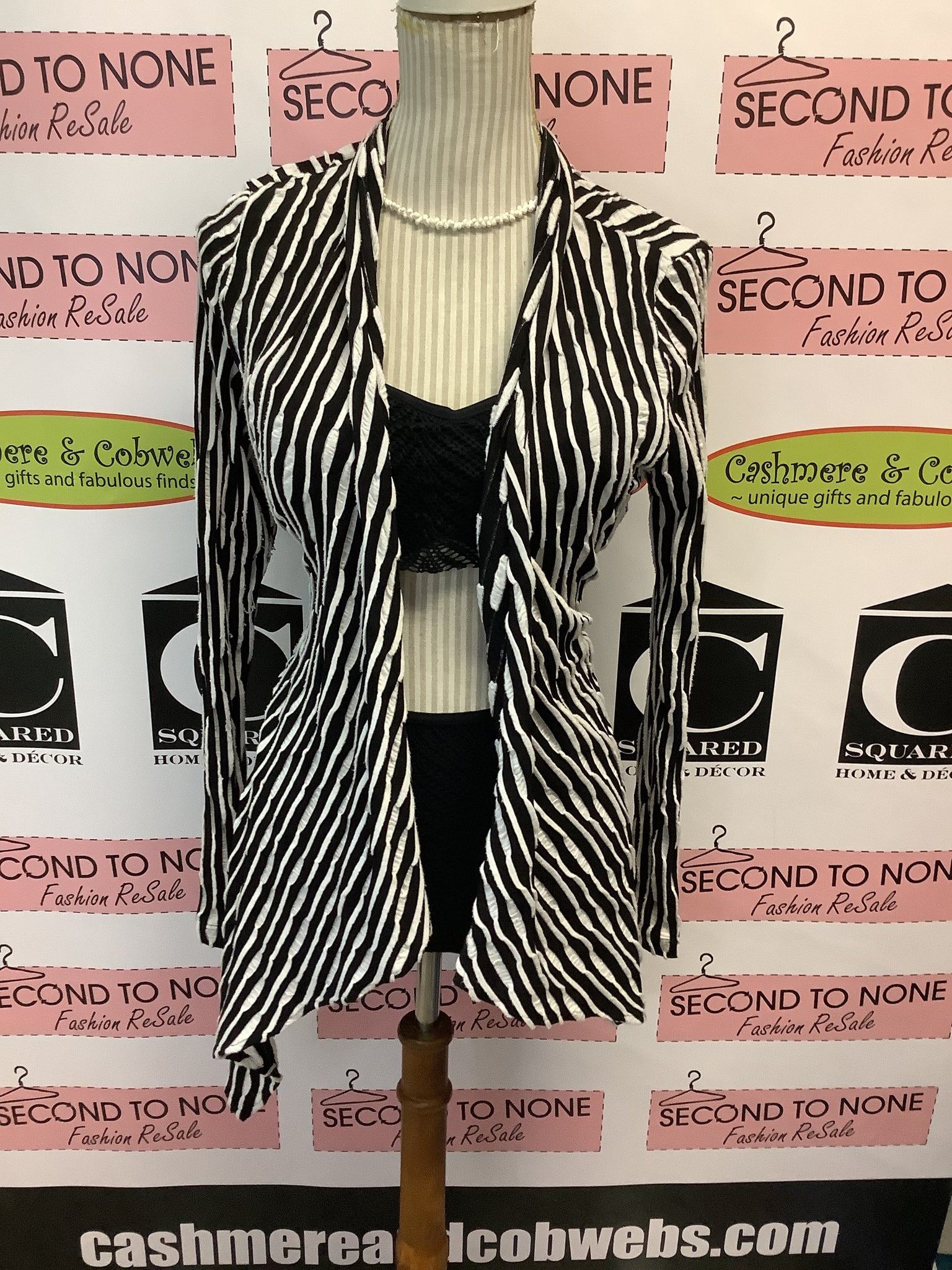 Make a statement with our Zebra Light Cardigan in Size M! This eye-catching black and white zebra print drapes beautifully over your favorite bathing suit or simple top. Fun, funky, and undeniably unique, this conversation-starting piece speaks for itself while keeping you stylishly covered. The perfect playful addition to any wardrobe that loves to stand out!