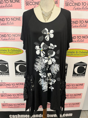 Nina Leonard Black Lace T-Shirt (Size XL)