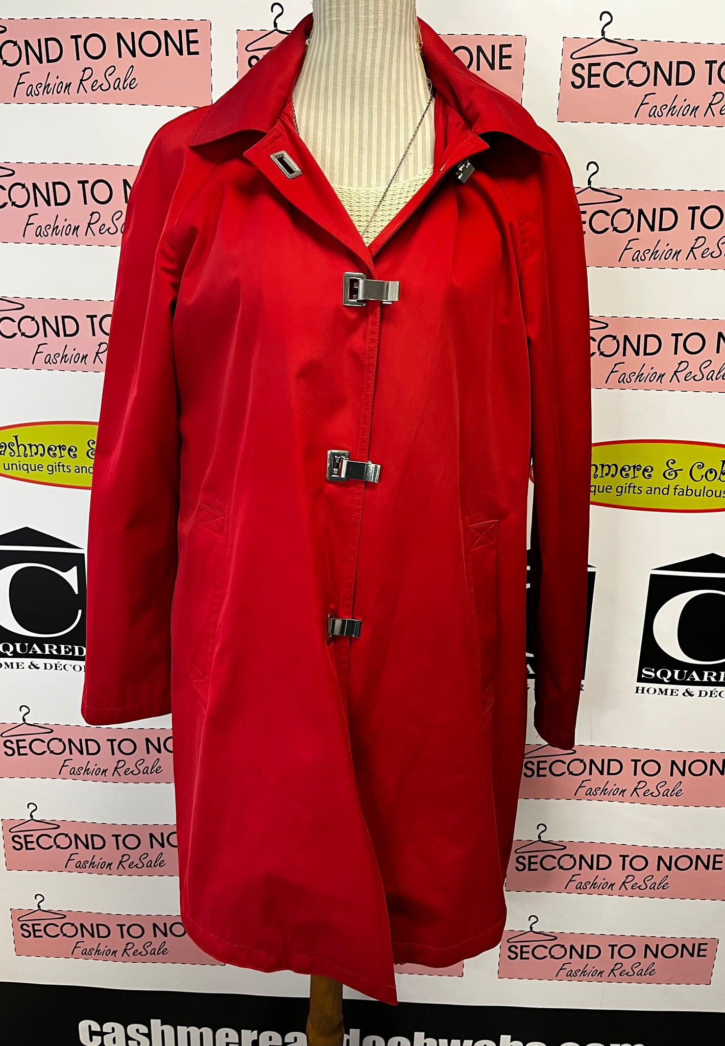 London Fog Cherry Red Trench Coat (Size L)