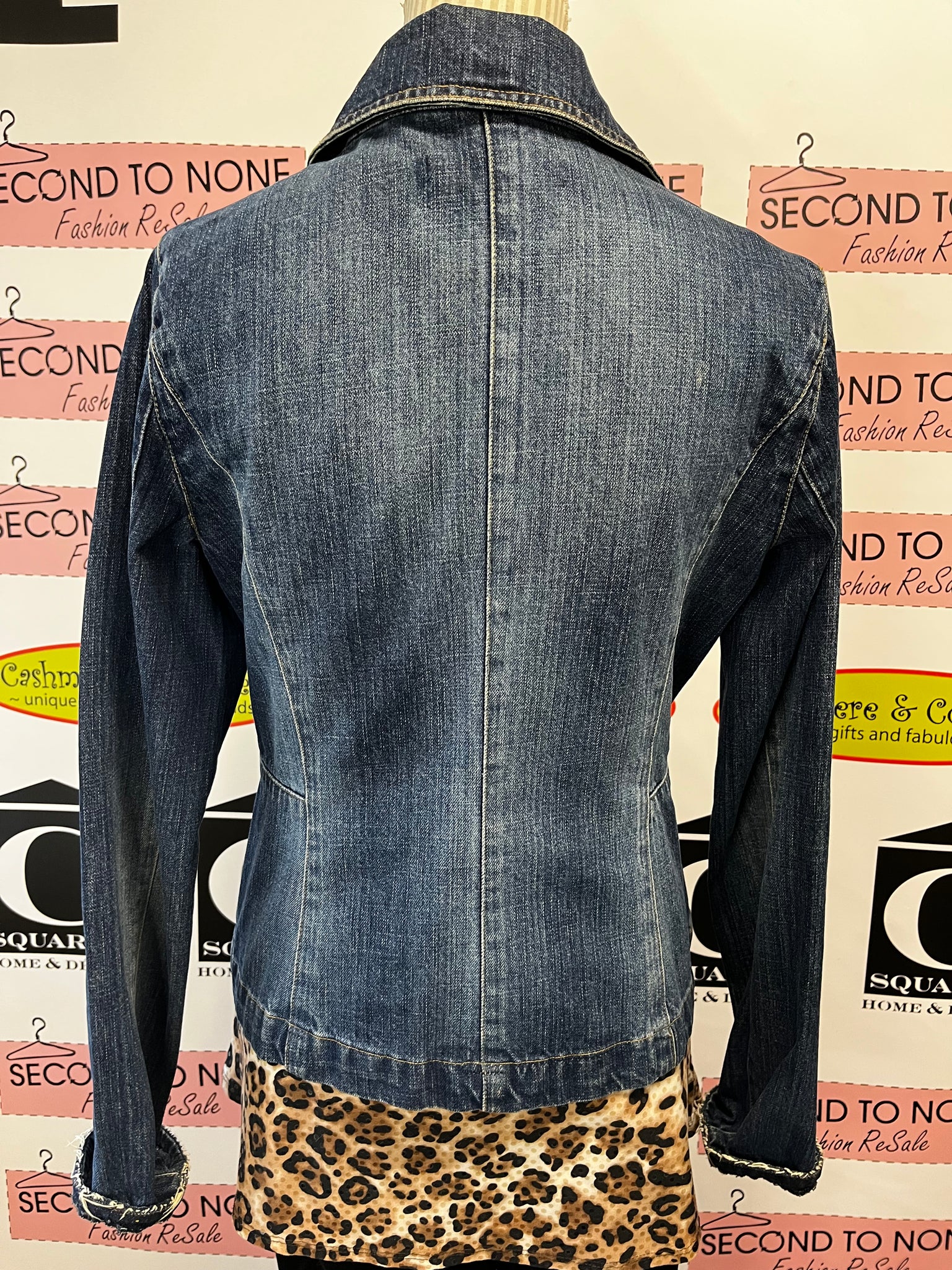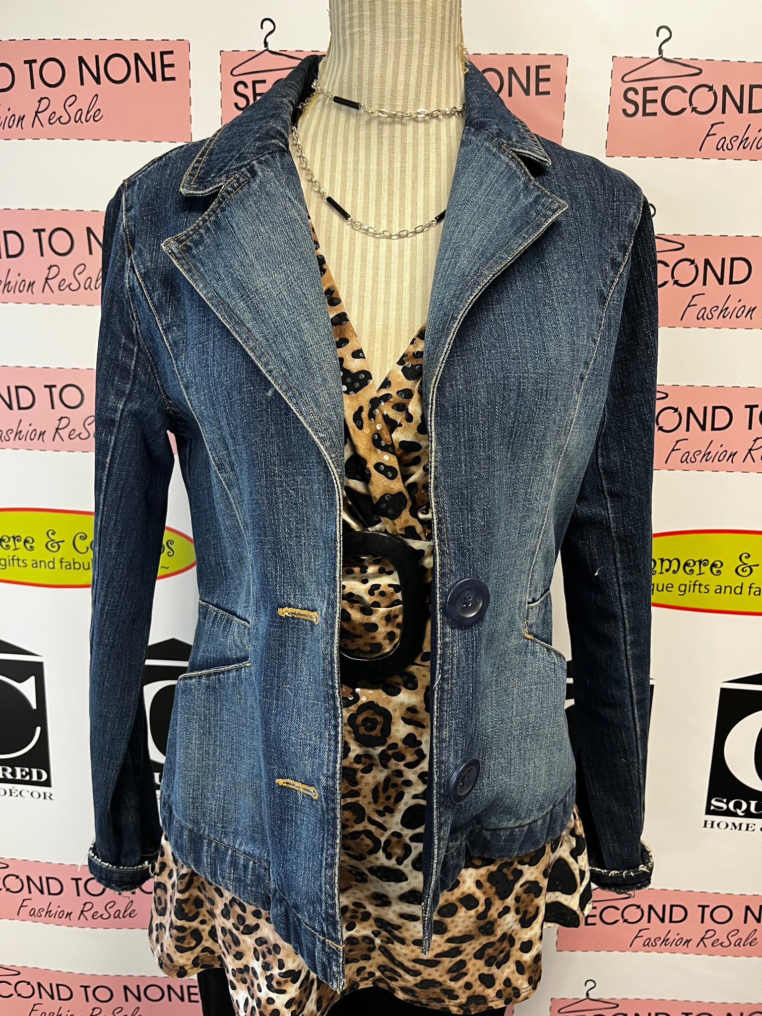 Timeless denim blazer in a rich blue wash, perfect for layering over any outfit. Features a classic button-front closure, functional pockets, and a structured lapel collar that adds polish to casual or smart-casual looks. The versatile denim construction works year-round, whether you're dressing up jeans or pairing it with dresses and trousers. A wardrobe essential that transitions effortlessly from day to night.