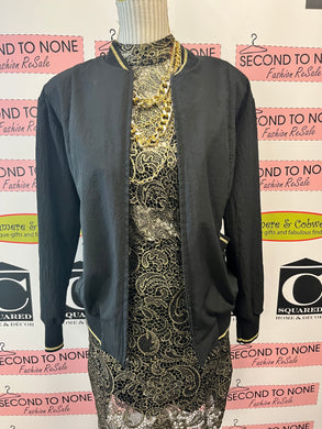 Vintage Gold-Trimmed Black Bomber Jacket (Size S)