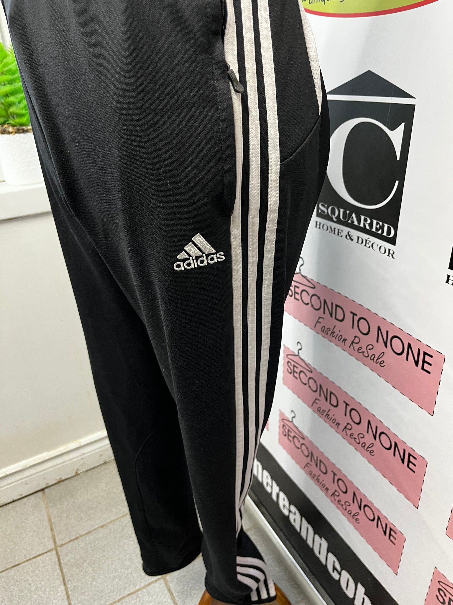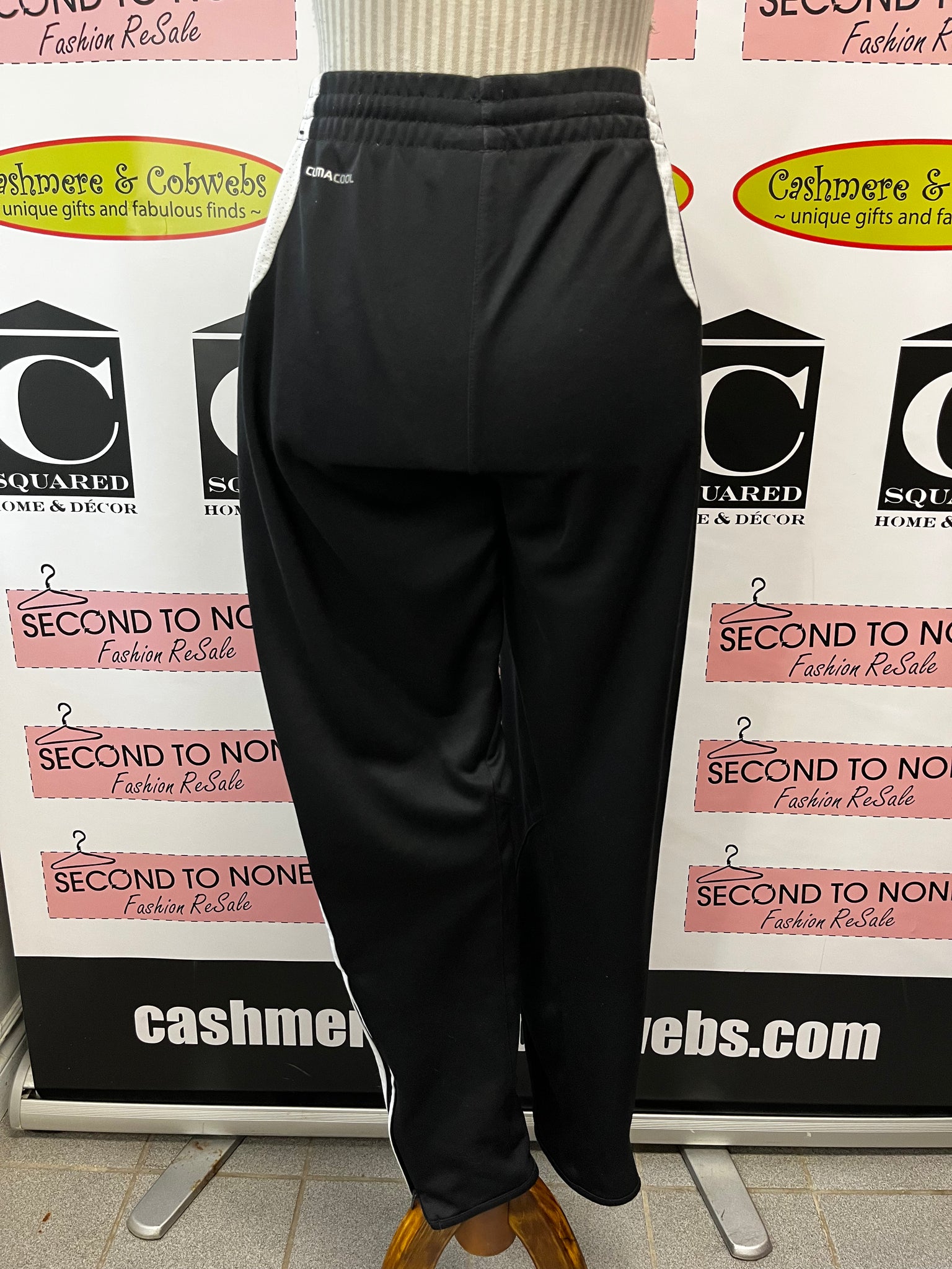 Step out in style with these Adidas Climacool Track Pants. Featuring the classic three white stripes down sleek black legs, they bring sporty vibes to your activewear collection. Made with breathable Climacool fabric, they keep you cool when the heat is on. Perfect for workouts or casual days, these pants combine comfort and iconic design effortlessly.