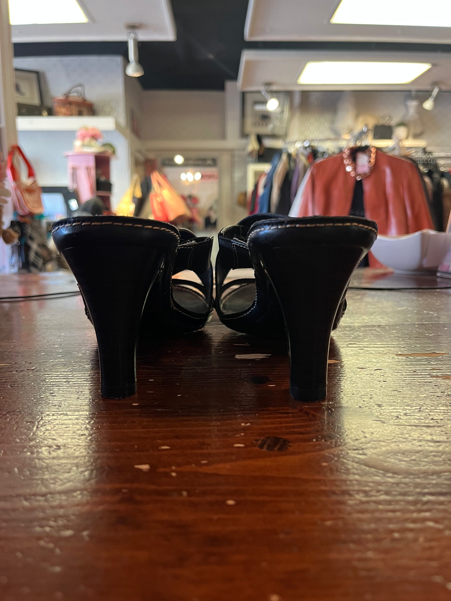 Aerosoles Black Leather Strappy Heels (Size 9)