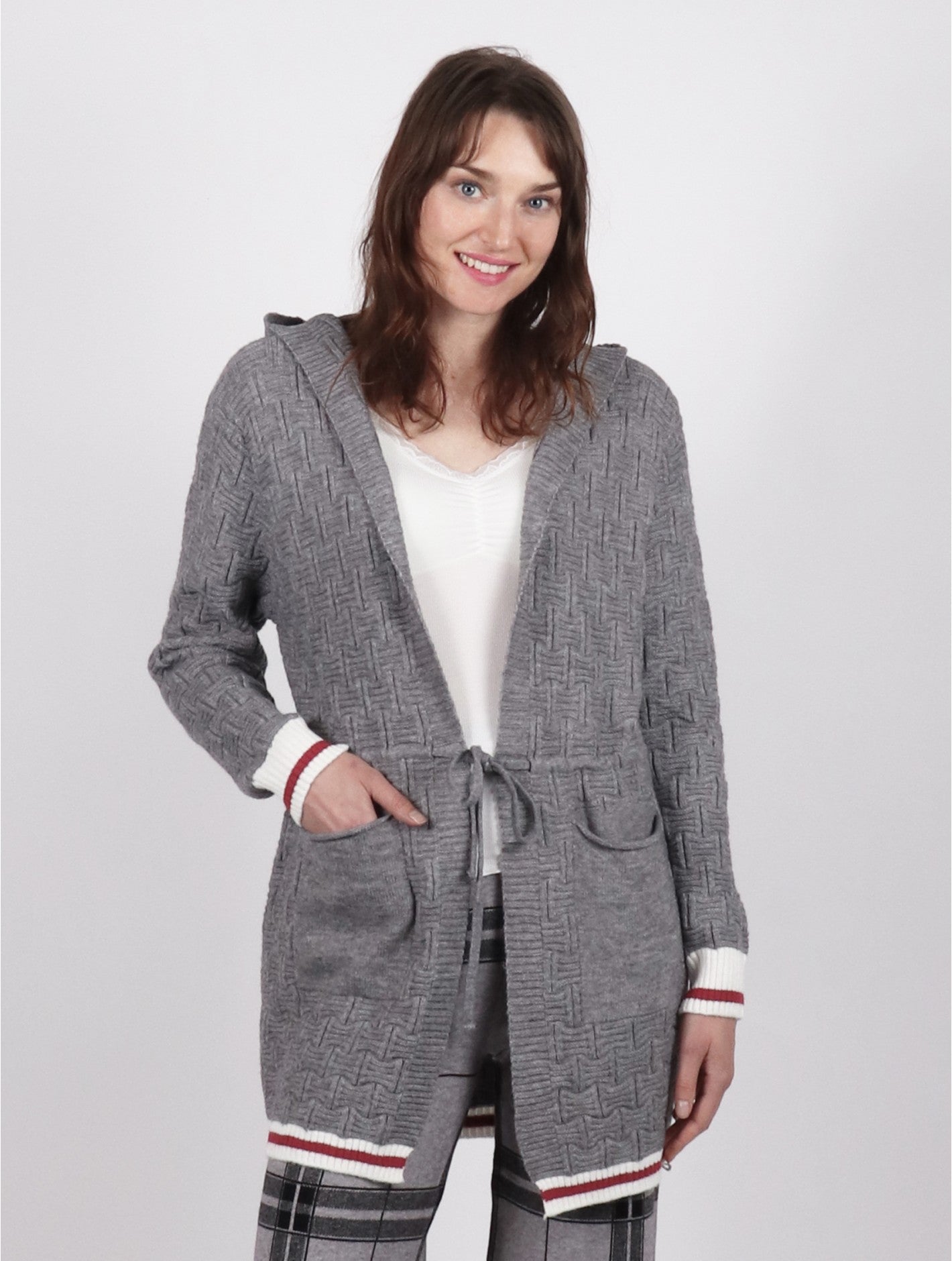 Embrace cozy comfort with a touch of Canadian flair in our Canadiana Grey Cardigan with Red+White Details, Pockets, and Hood. This stylish cardigan features a classic grey base accented with bold red and white details, bringing a vibrant yet classic feel to your look. Designed with a functional hood and cozy pockets, it offers both style and practicality for colder days. Whether you’re lounging at home or enjoying an outdoor adventure, this cardigan adds warmth and a pop of color to any casual outfit.