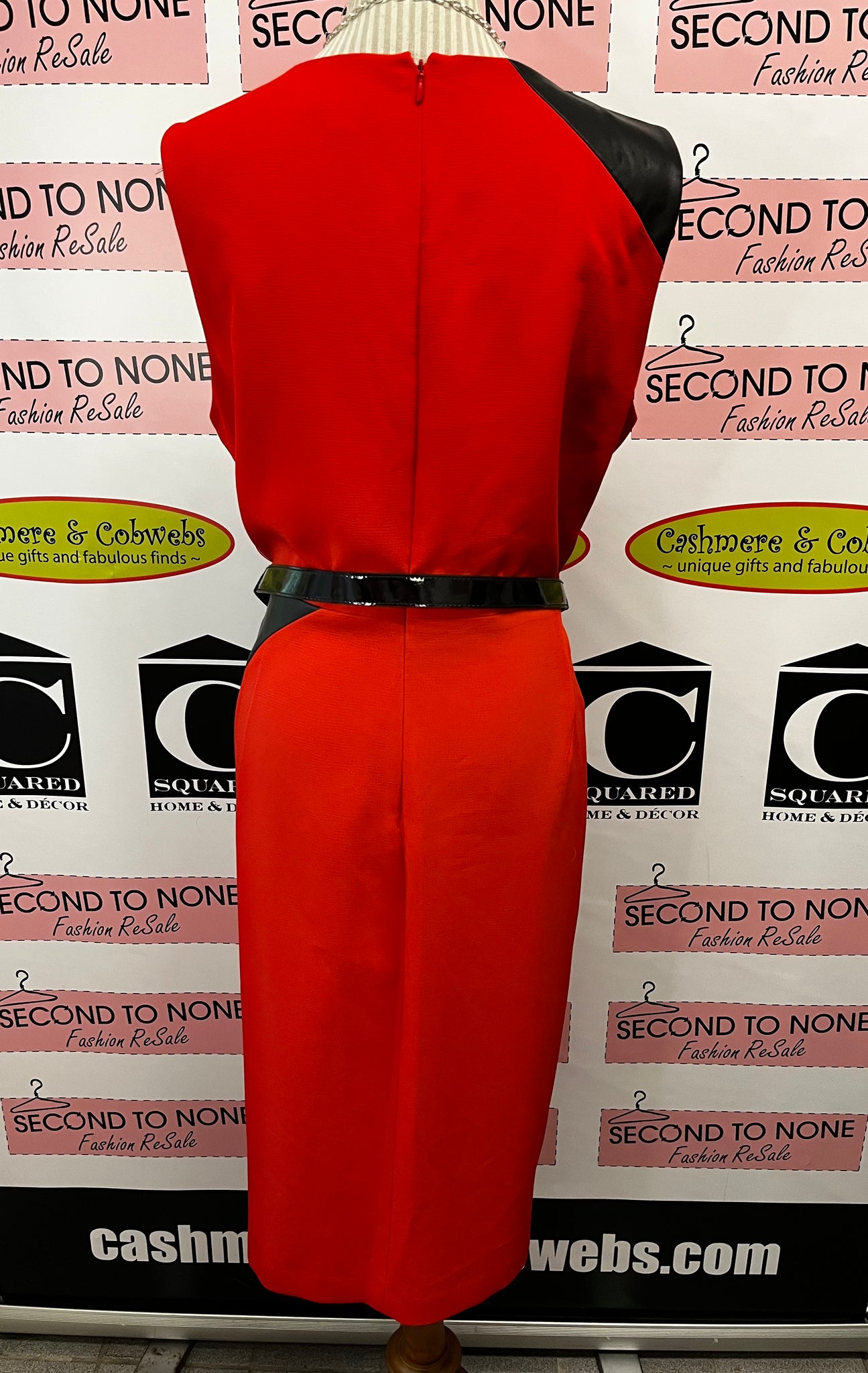 Slip into effortless style with this Calvin Klein belted dress that transitions seamlessly from office to evening. The vibrant red hue commands attention while sleek black faux leather accents and a cinched belt define your silhouette with modern edge. Sleeveless and versatile, this piece works as hard as you do—whether you're conquering the workday or stepping out for weekend fun. A wardrobe essential that proves red never goes out of style.