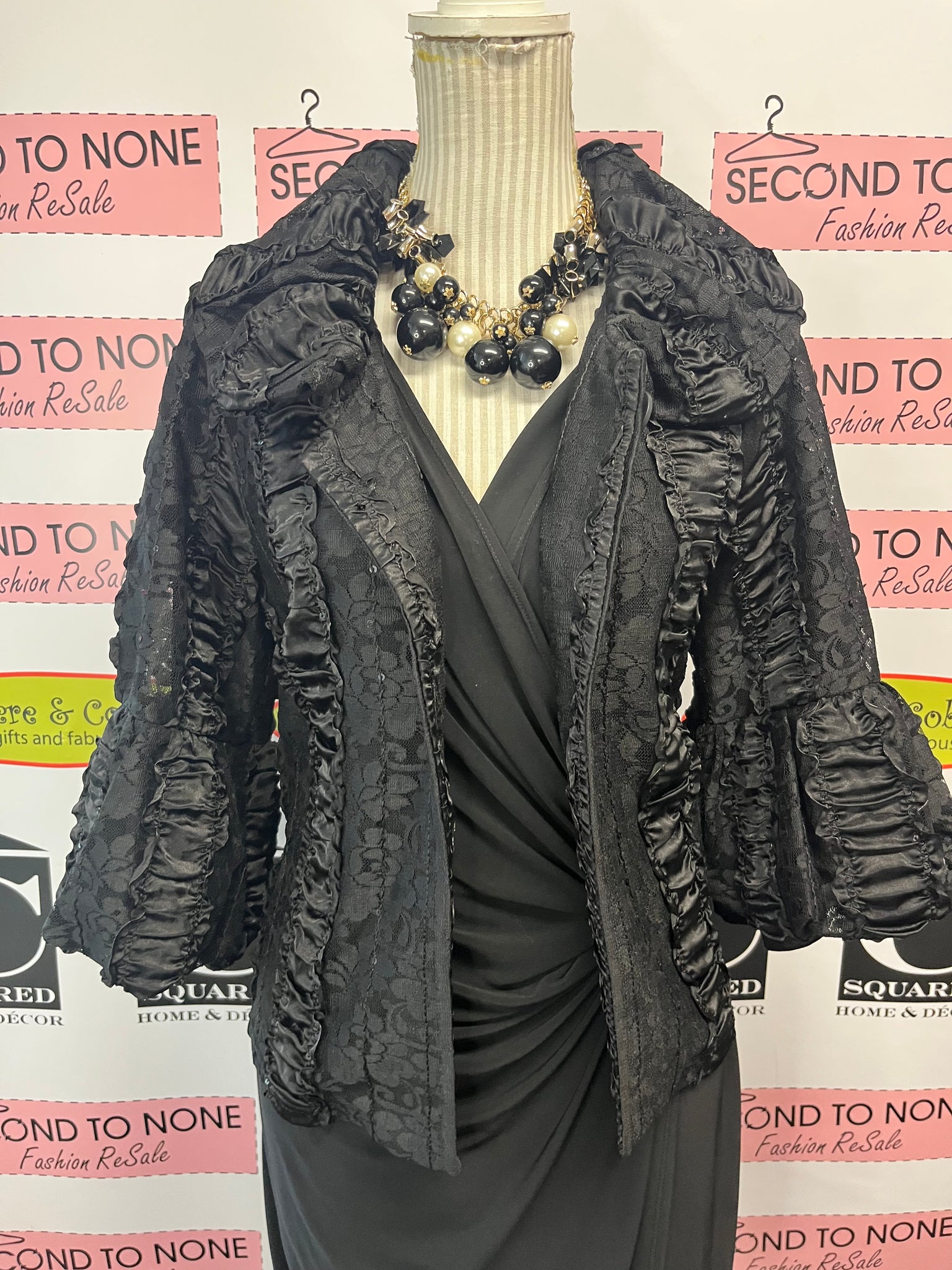 This playful mock-wrap dress features 3/4 sleeves and a gold circle accent that adds a touch of sparkle. Made from stretchy silky fabric, it moves with you for all-day comfort. A back zipper ensures easy on and off, making it your go-to for effortless style. 95% polyester/5% spandex