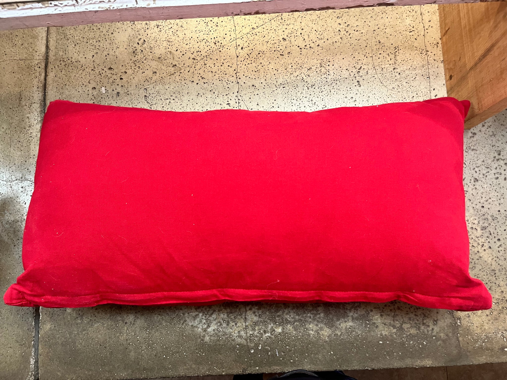 Deck your space with instant holiday vibes! This bold red pillow features a rope-twisted "MERRY" that practically jumps off the cushion. Perfect for sofas, chairs, or beds, it's the cheeky way to spread Christmas cheer without going overboard. Simple, striking, and seriously fun.  Measures 26" x 14".