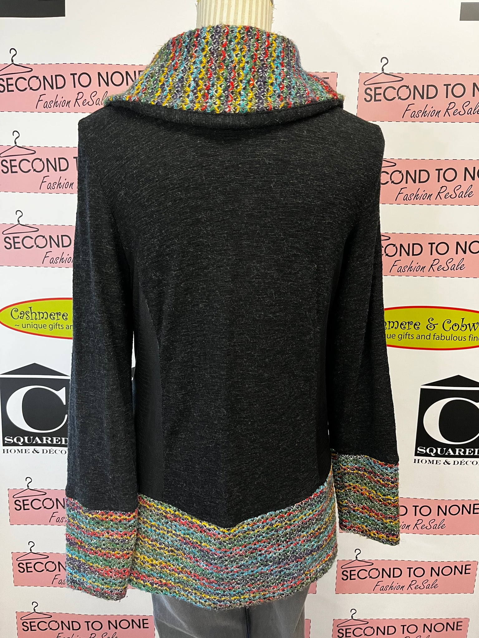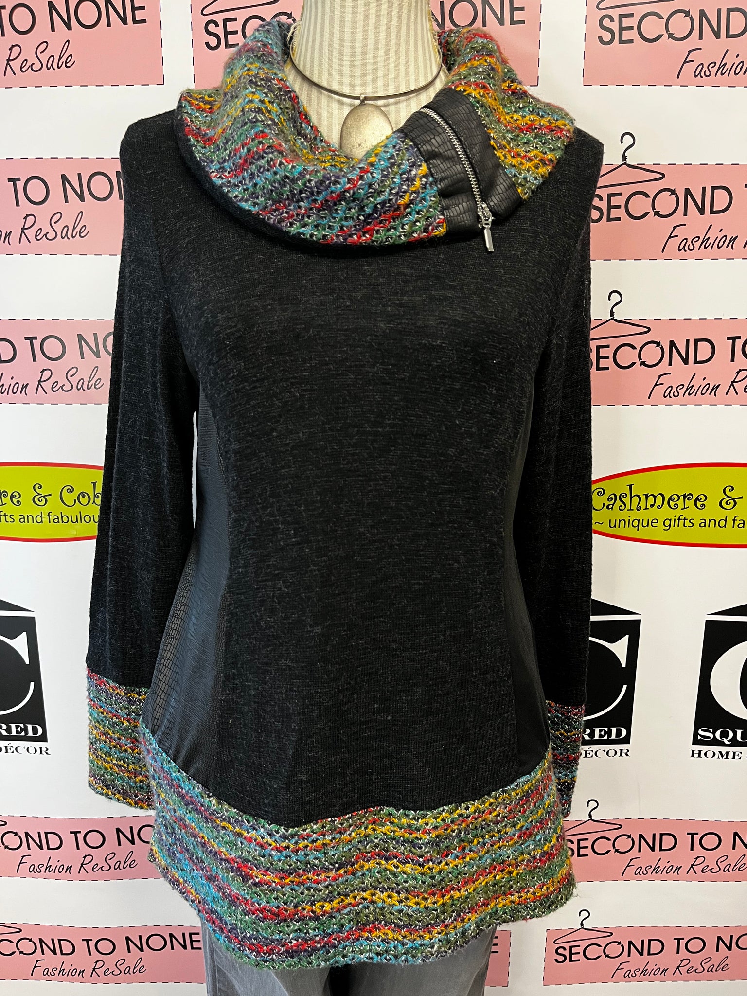 Elevate your everyday wardrobe with this chic Michael Tyler tunic—a Canadian-made treasure that proves black never goes out of style. The tunic length offers effortless coverage, while long sleeves keep you cozy through the seasons. But here's where it gets fun: a vibrant knit cowl neck and matching cuffs add a pop of colour and personality that transforms this classic piece into something truly special. Perfect for layering or wearing solo, it's the kind of top that makes getting dressed feel like an adventure.