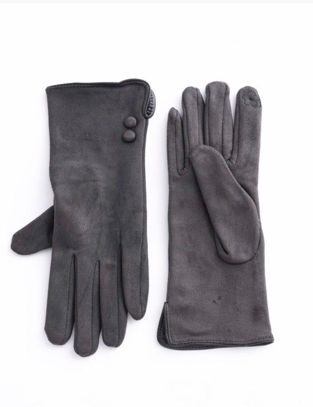 Stay connected all season long with these gorgeous stretch gloves designed for modern life. Featuring clever texting-friendly fingertips, you'll never miss a message while keeping your hands toasty warm. The elegant button details add a touch of sophistication, while the stretchy fabric ensures a comfortable fit for most. Perfect for autumn strolls, winter errands, or any chilly day when you need to stay in the loop—literally.  Available in Dark Grey & Rustic.