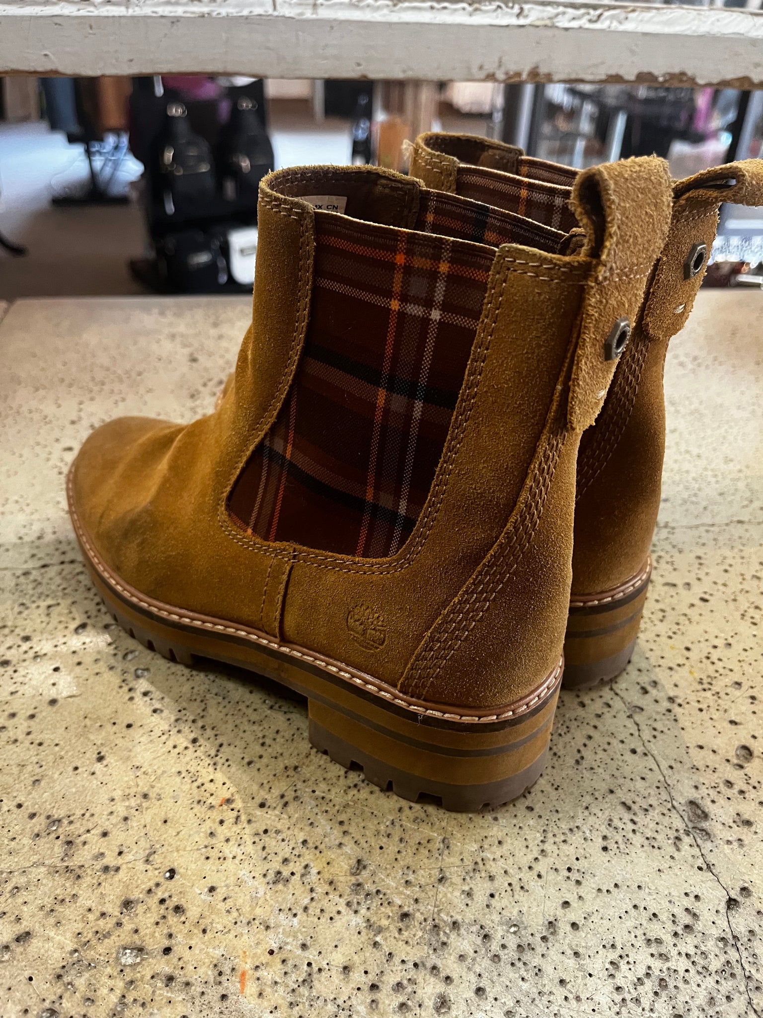 Step into cozy vibes with the Timberland Courmayeur boots! These brown suede slip-ons feature playful plaid stretchy elastic sides, making them easy to pop on and off while adding a fun twist to your outfit. Crafted with Timberland’s signature quality, they combine comfort and durability for adventures near and far. Perfect for size 7 feet ready to stroll in style with a touch of flair!