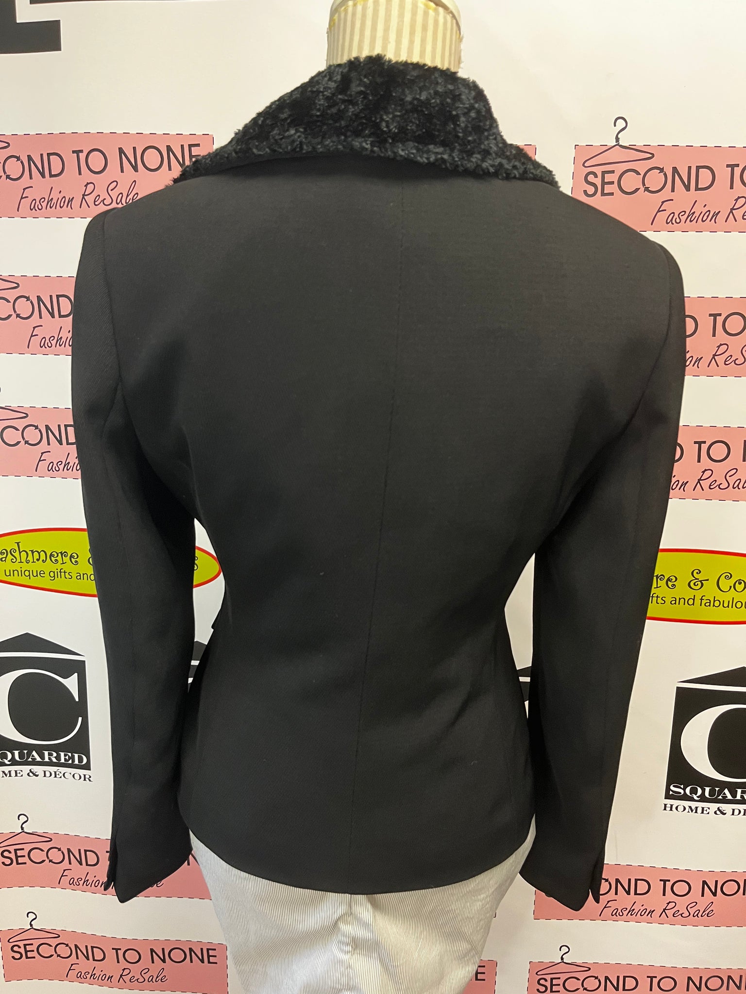 Vintage Fur Collar Black Blazer (Size 6)