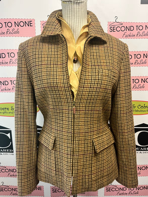 Ralph Lauren Wool Brown Houndstooth Riding Jacket (Size M)