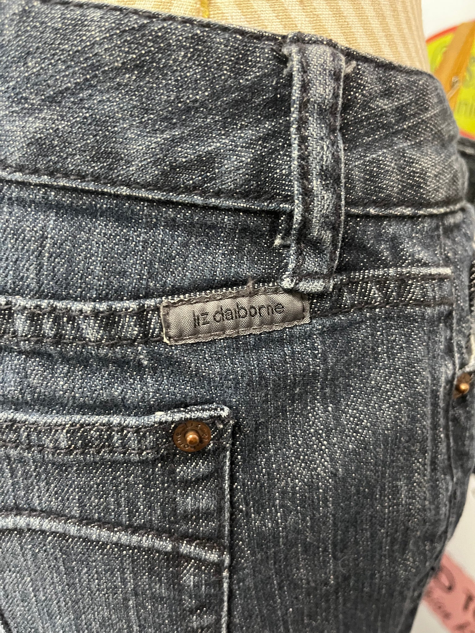 Elevate your denim game with these Liz Claiborne bootcut jeans in pinstripe blue. The slim, flattering silhouette skims your legs beautifully, while a charming floral applique on the left leg adds a whimsical touch that sets them apart from your everyday pair. Perfect for dressing up or down, these jeans are your new go-to for effortless style with personality.