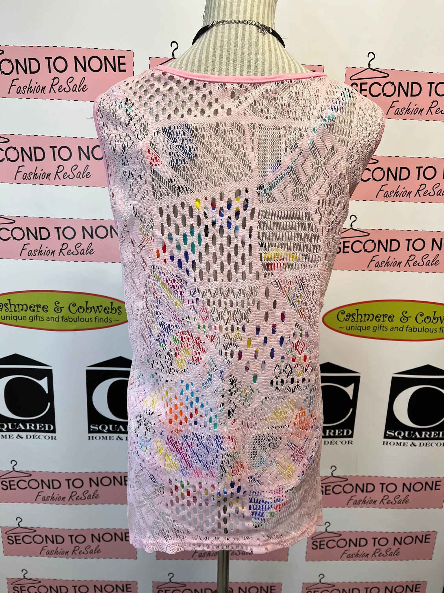 Add a touch of whimsy to your outfit with this soft pink lace overlay. Featuring an open front and a charming single button at the neckline, it’s perfect for layering over your favorite t-shirt, dress, or as a breezy beach cover-up. Light, airy, and effortlessly stylish—this piece brings playful elegance to any look.