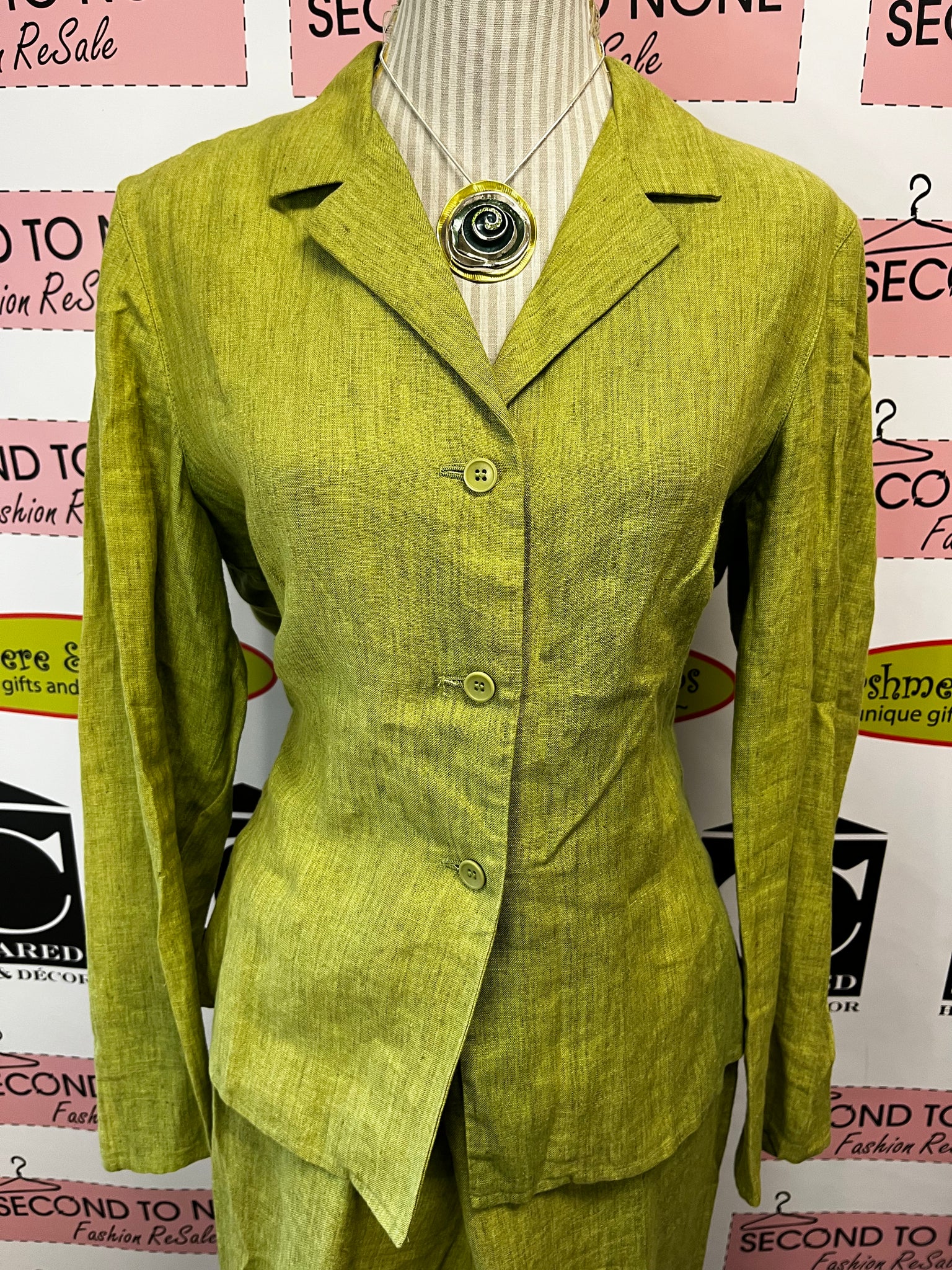 Get twice the wardrobe magic with this brilliant Jones New York linen set. Featuring a bright green jacket and pants in 100% pure linen, this dynamic duo works beautifully together for a coordinated look or separately to mix and match with your existing pieces. The natural linen fabric keeps you cool and comfortable while maintaining that effortlessly chic vibe. Layer the jacket over your favorite tee, or rock the pants solo—the styling possibilities are endless. Perfect for anyone who loves versatility without sacrificing style.