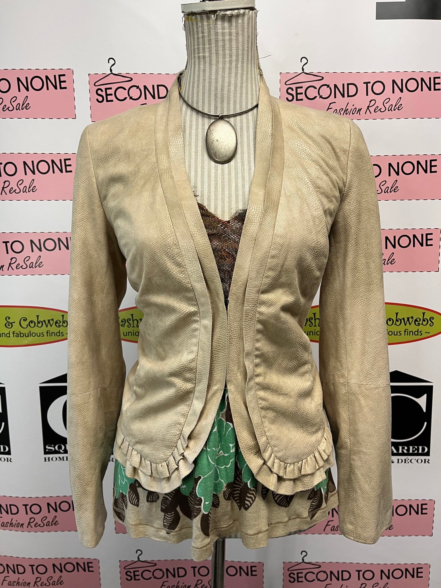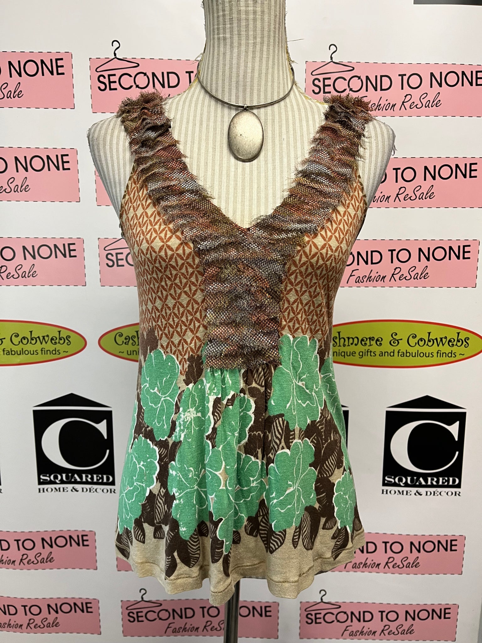 Mixed Print Ruffle Front Tank Top (Size S)