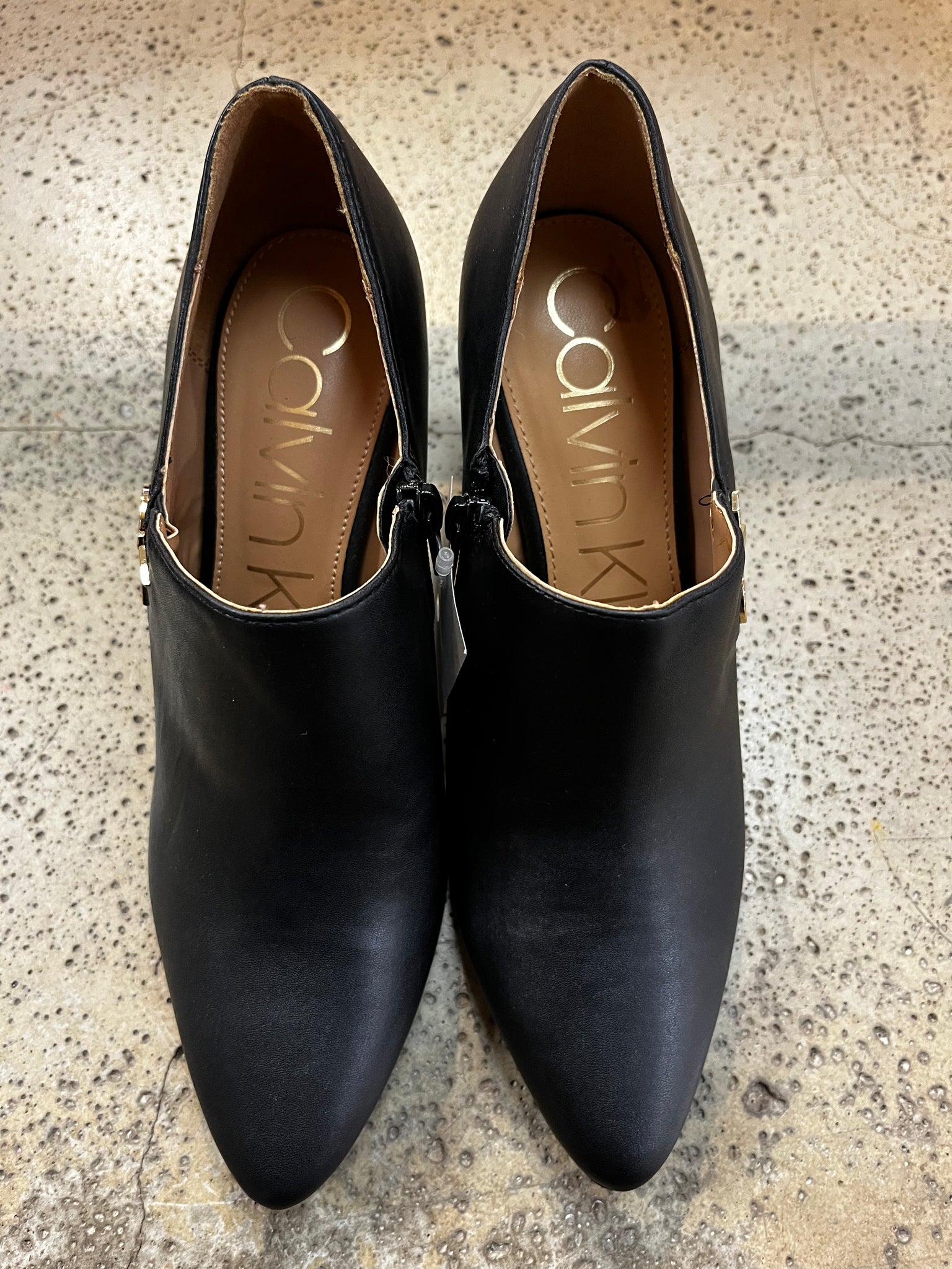 Step out in style with these sleek black ankle boot heels by Calvin Klein. Featuring a sharp pointed toe and a 3-inch heel, they add just the right amount of edge and elegance to any outfit. Brand new with tags, these size 7½ beauties are ready to elevate your look from day to night with confidence and flair. Perfect for those who love a little lift and a lot of attitude!