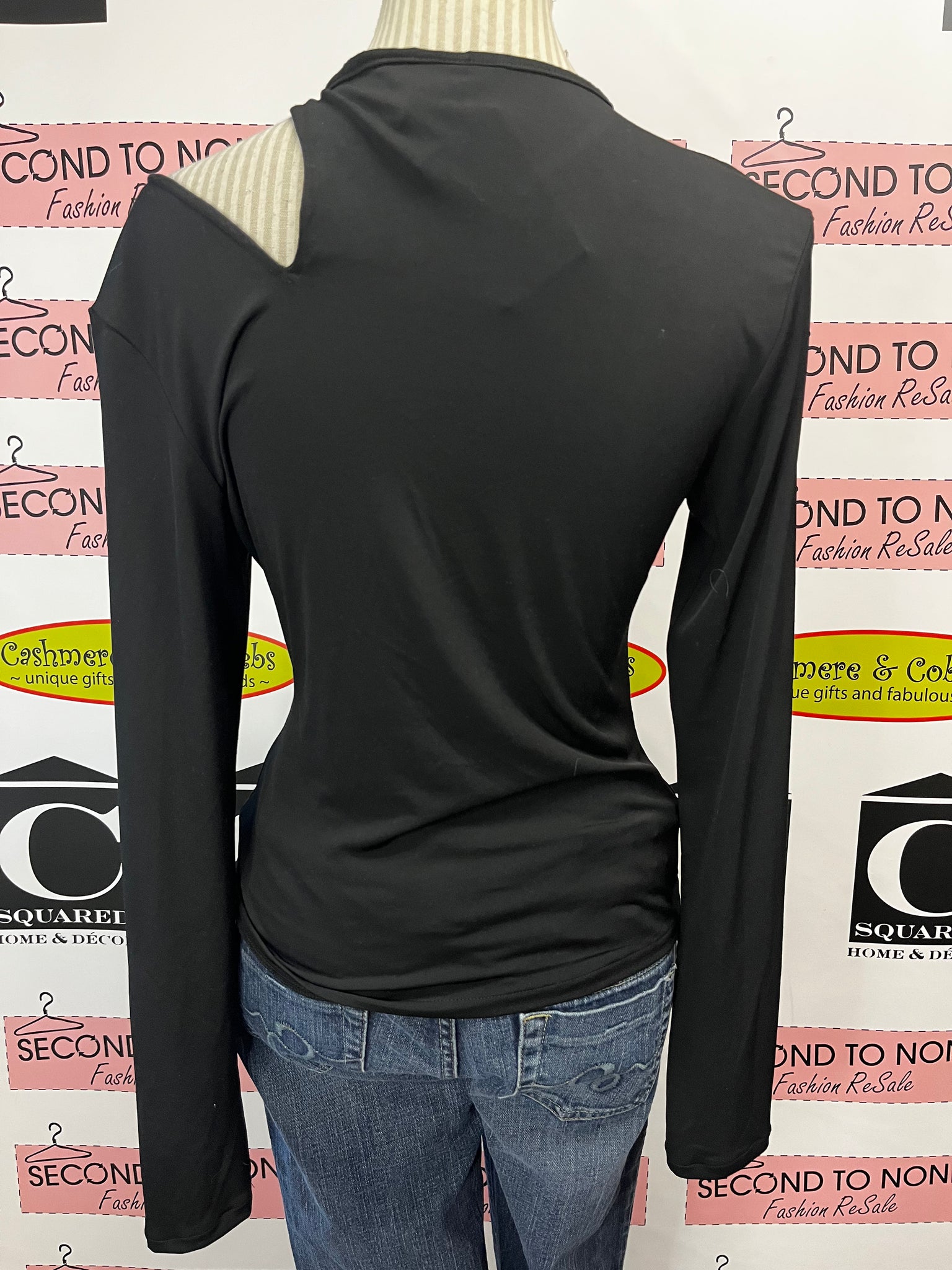 Elevate your wardrobe with this sultry H&M cutout top—a playful take on modern edge. Crafted from stretchy fabric that moves with you, this black long-sleeve piece features a daring front cutout that strikes the perfect balance between sexy and sophisticated. The fitted silhouette hugs in all the right places, making it ideal for nights out or turning heads at any occasion. Brand new with tags, it's ready to become your go-to chic essential.