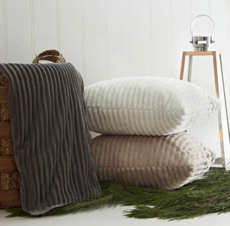 Wrap yourself in this super cozy & warm throw which is the ultimate in comfort. It's soft plush ripple front reverses to an even softer fleece back. Luxury, elegance & comfort in one. Machine washable. Coordinates with the Ripple Pillows. Measures 50" x 60". Polyester. Makes a great gift!