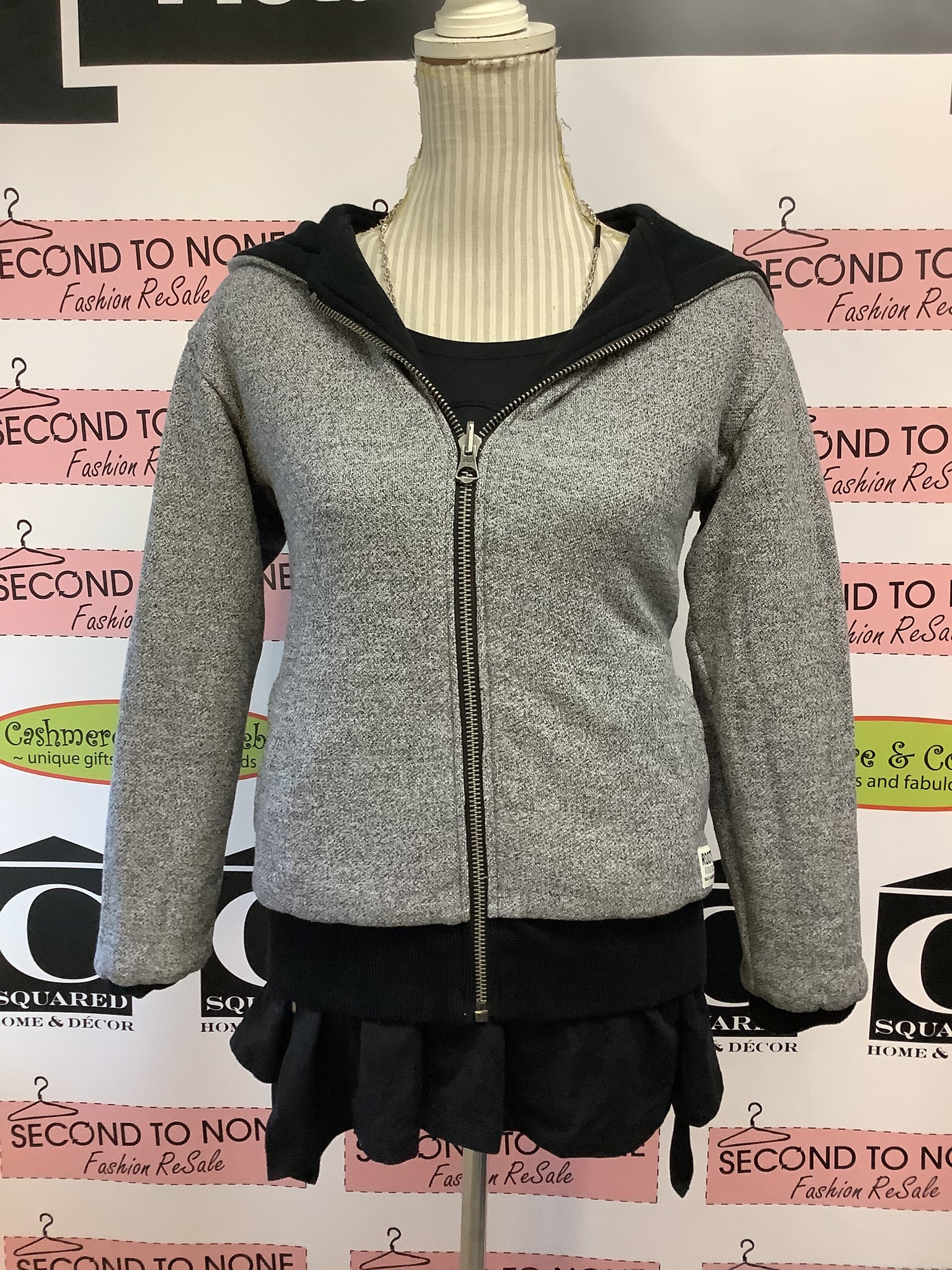 Elevate your casual wardrobe with this versatile Roots reversible zip-up sweater. Crafted from sumptuous soft fabric, it transitions seamlessly from sporty to loungewear with two distinct styles in one piece—charcoal grey on one side and classic design with purple lettering on the reverse. The iconic large logo graces the back, while functional pockets and a full-length zipper enhance both style and practicality. Cozy enough for relaxed evenings, polished enough for active pursuits, this sophisticated essential adapts to your lifestyle with effortless elegance.
