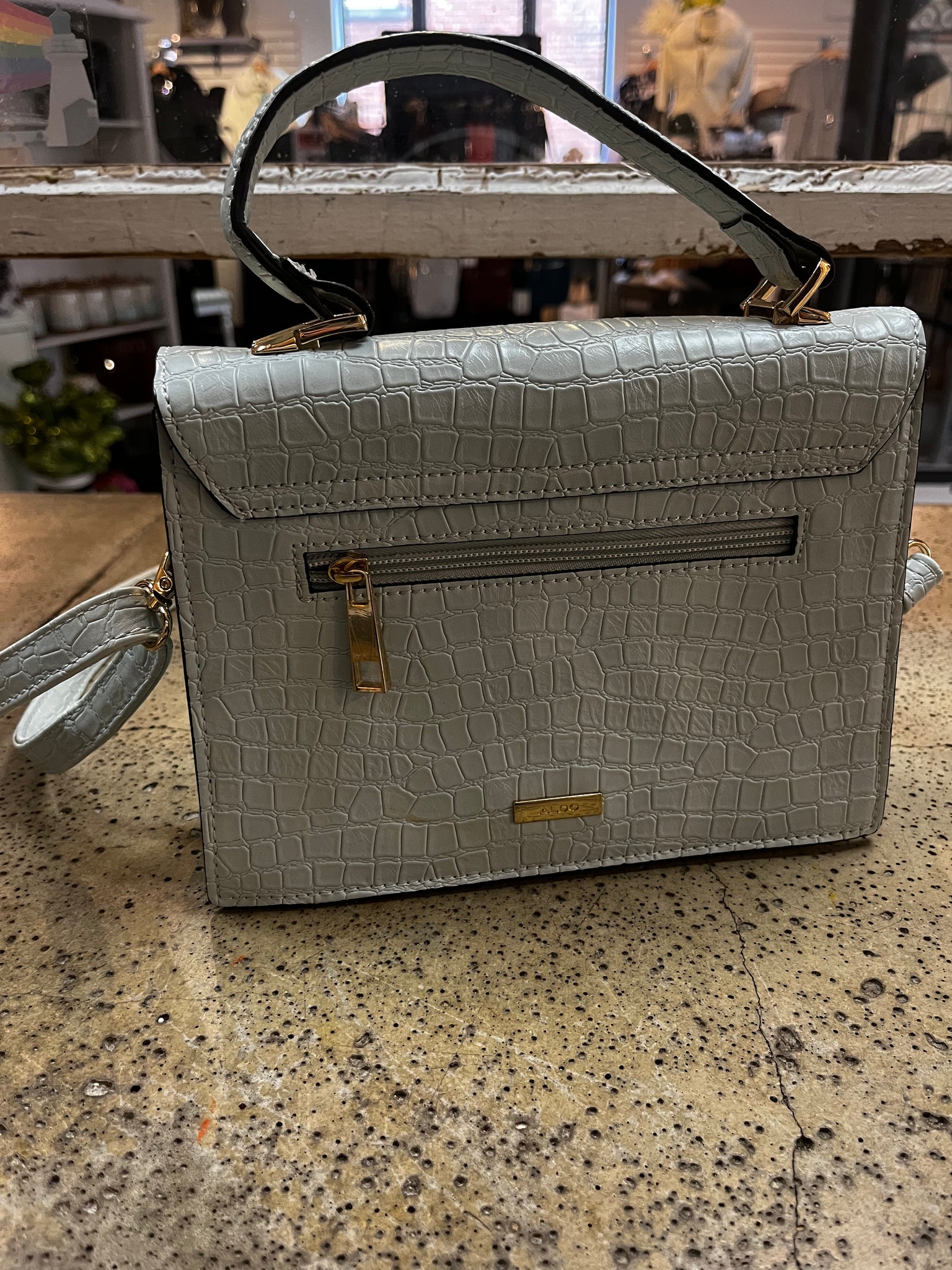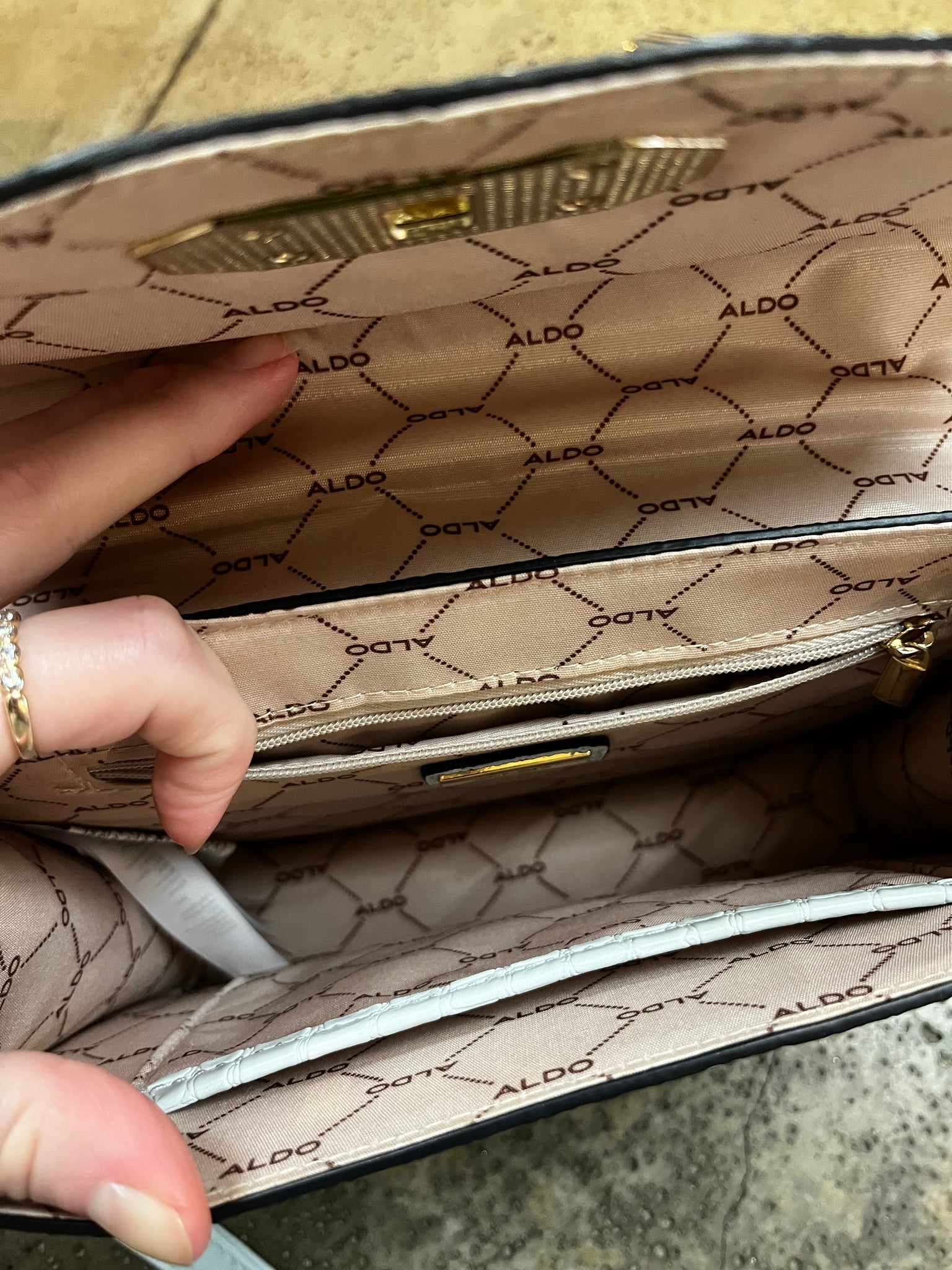 Elevate your everyday style with this chic Aldo handbag in soft mint green. Crafted from supple faux leather with an eye-catching snakeskin texture, it's a statement piece that plays beautifully with any outfit. The adjustable crossbody strap lets you wear it your way—slung across your body for hands-free convenience or carried by hand for a polished look. Gleaming gold metal accents add a touch of sophistication and catch the light just right. Perfect for the fashion-forward who refuses to compromise on versatility or charm.