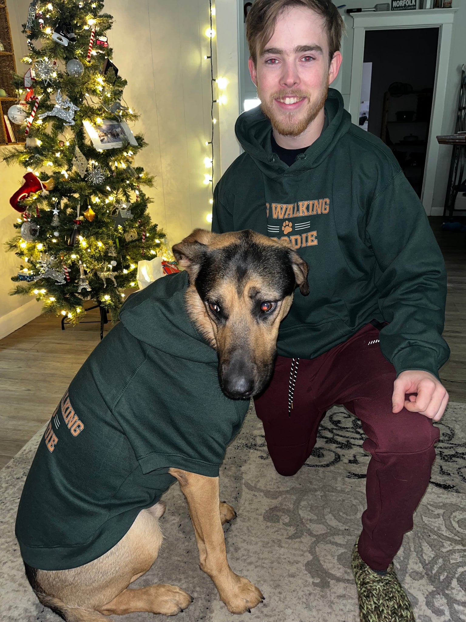 This Dog Walking Hoodie will have your furry friend looking their best as they accompany you on your strolls. Its forest green colour adds sophistication to your pet's look, while the hoodie will keep them warm and comfortable. With sizes ranging from XS to 3XL, you can match your pet in a fashionable style. The bold "Dog Walking Hoodie" label is sure to make a statement.