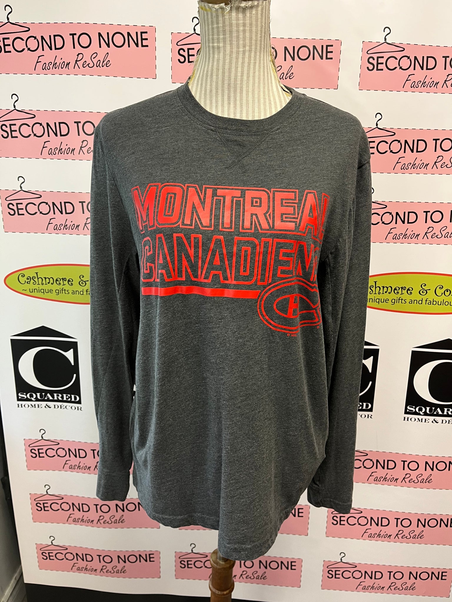 Show your team spirit with this cozy grey long sleeve tee featuring a bold red Montreal Canadiens logo front and center. Perfect for game day or just lounging around, it’s a fun and comfy way to celebrate your favorite hockey squad. Grab yours and cheer in style!