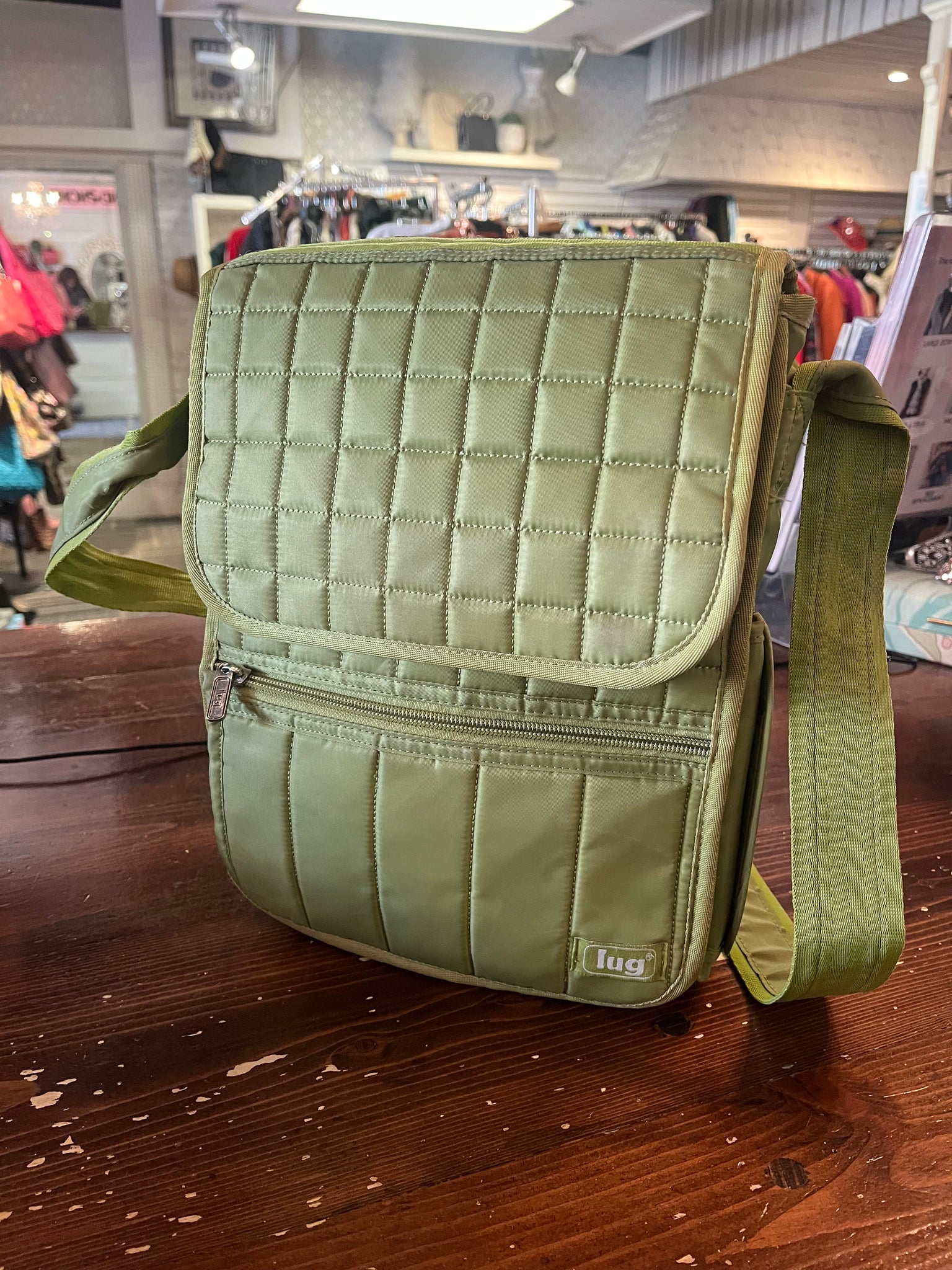 Carry your essentials in style with this gorgeous green quilted crossbody from Lug. Packed with multiple pockets and smart storage compartments, it keeps everything organized and within reach. The side-mounted collapsible water bottle pocket means you're always hydrated on the go, while the adjustable crossbody strap lets you find your perfect fit. Whether you're running errands or heading out for an adventure, this practical beauty has your back—literally!