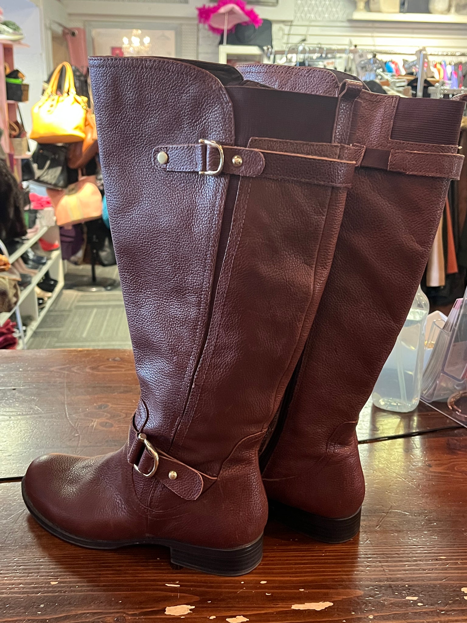 Naturalizer Wide Calf Brown Leather Riding Boots (Size 7.5)