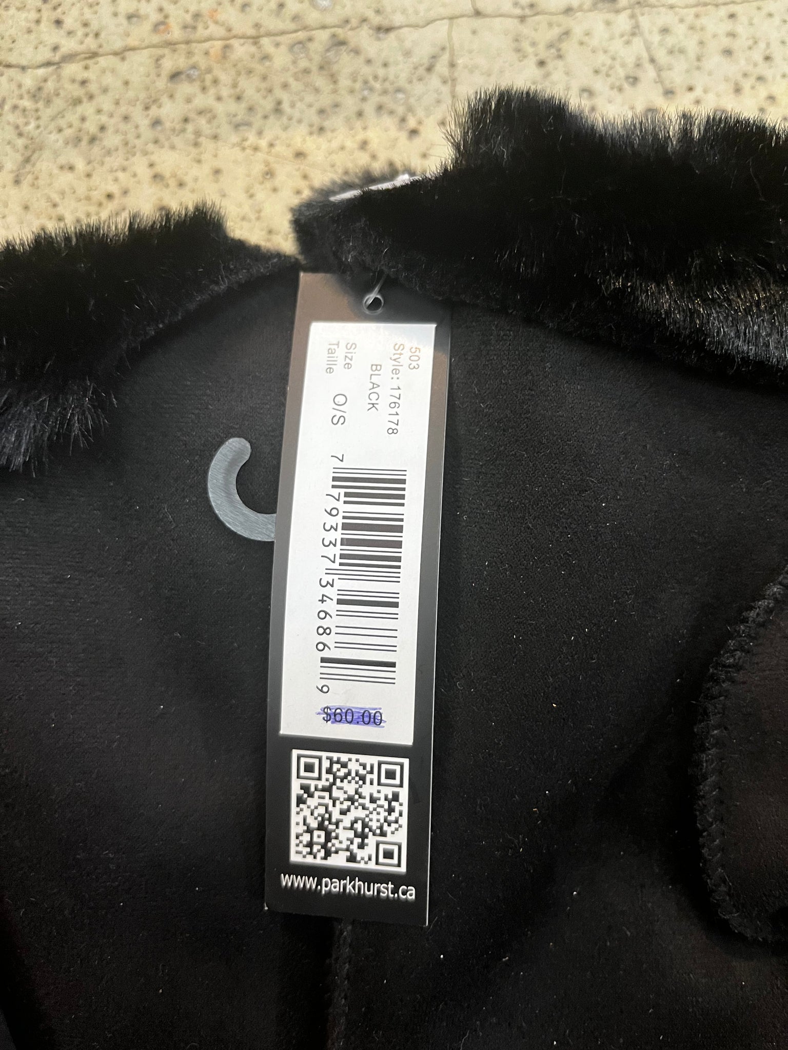 Keep your hands cozy and chic with these NWT Parkhurst mittens. Crafted in solid black faux suede with a plush faux fur lining, they promise warmth without sacrificing style. The fold-over cuff adds a playful touch while ensuring extra snugness. Perfect for chilly days, these mittens bring comfort and fun to your winter wardrobe.