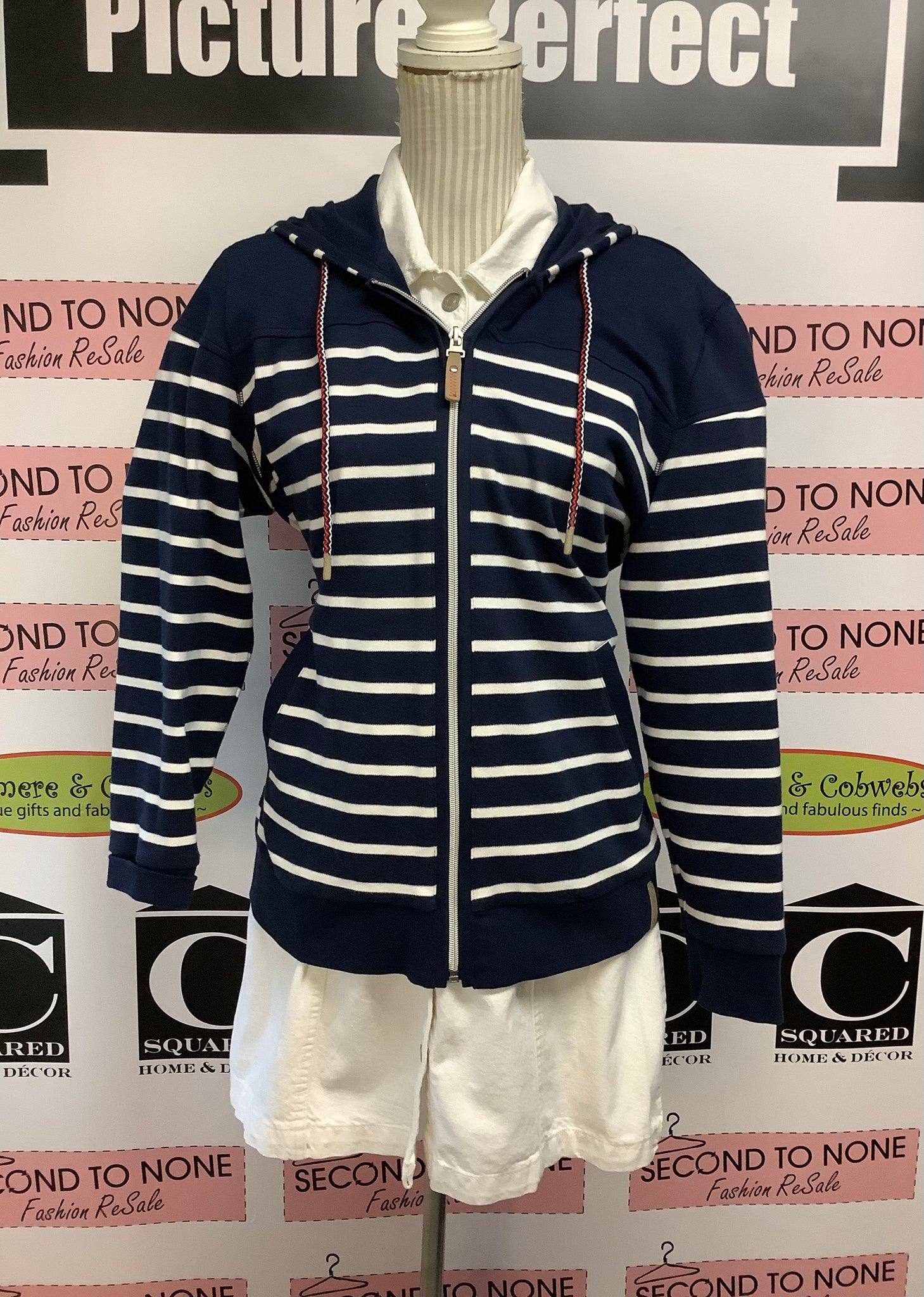 • Load image into Gallery viewer, Orly Nautical Zip Up Sweater (Size L)