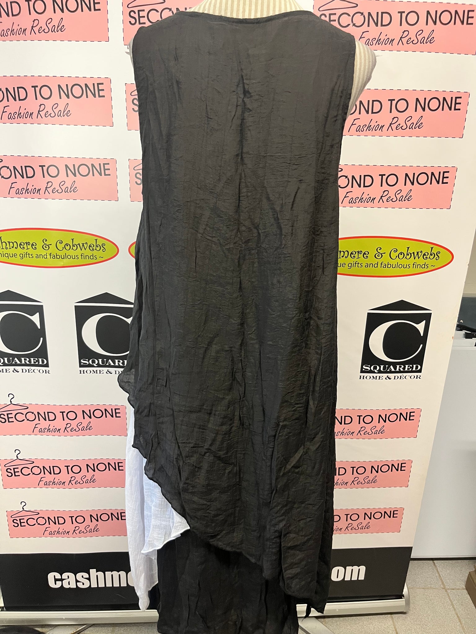 The Papa Layered Dress offers a unique and flowy design with a midi length and sleeveless style. Its round neckline and three tiered layering create a versatile and fashionable look. Made from lightweight and breathable fabric, it can easily be dressed up or down. Plus, it conveniently folds down very small for easy transport. Size XXL.