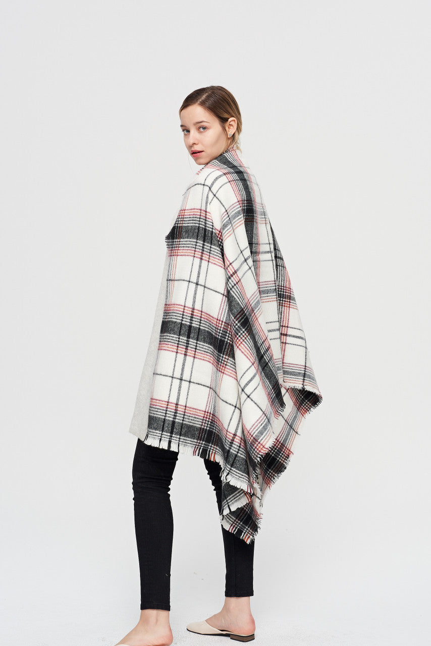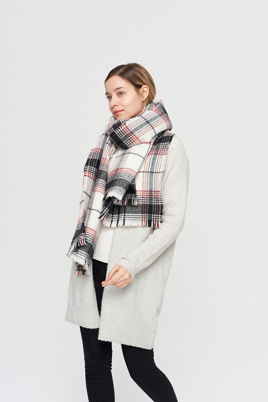 Wrap yourself in cozy charm with this oversized plaid blanket scarf featuring a classic red, white, and black pattern. Impossibly soft and generously sized, it's the perfect companion for layering over your favorite sweater or draping across your shoulders for instant warmth and style. Whether you're bundling up for a crisp Canadian winter or adding a pop of pattern to your everyday look, this versatile wrap delivers comfort without compromise.