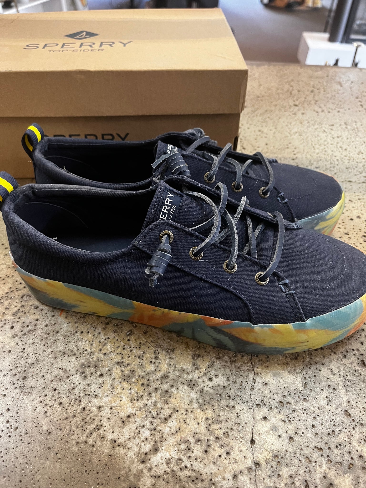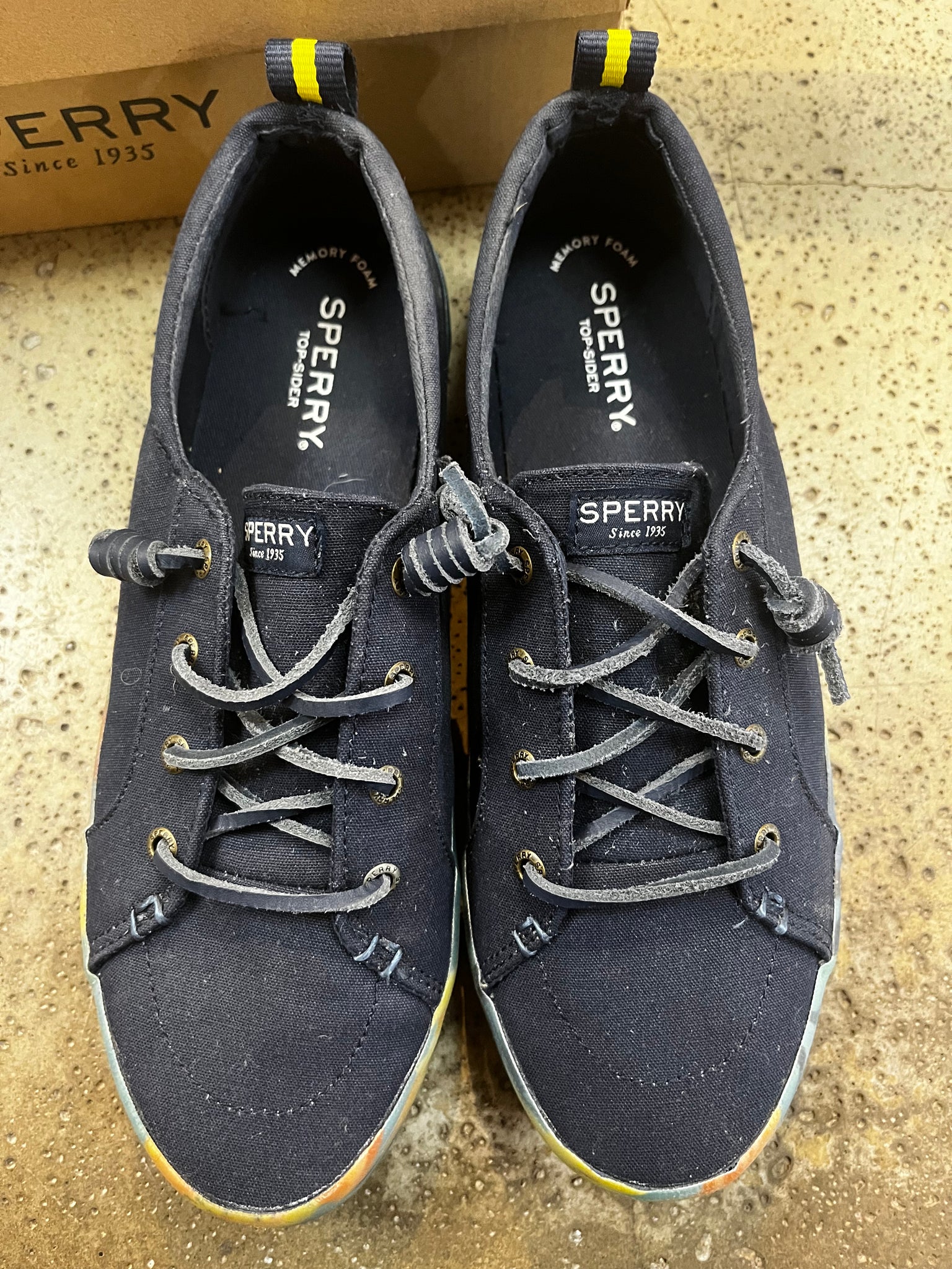 Add a splash of fun to your footwear with these Sperry Crest Vibe Platform Shoes in navy floral print! With a playful lace-up front and cushy memory foam sole, they offer both style and comfort. Brand new in the original box, these size 9 shoes are ready to elevate your look with a pop of personality and all-day ease.