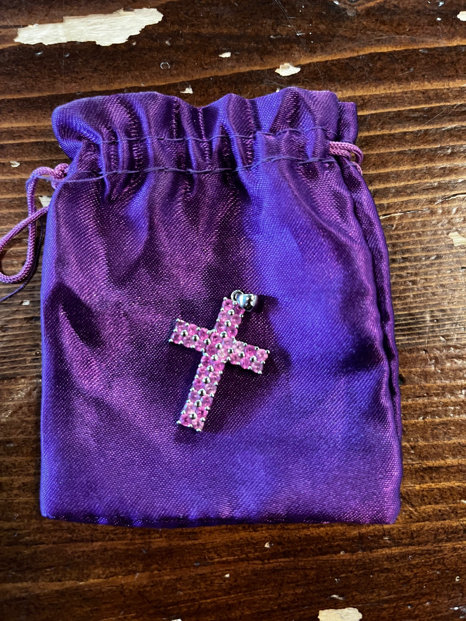 Make a statement with this enchanting sterling silver cross charm! Designed to slide onto your favorite necklace chain, it features a radiant purple gem that sparkles with undeniable charm. Mix it with other pieces to create your signature look, or let it shine solo as a meaningful accent. Playful, pretty, and packed with personality—this little gem is your ticket to jewelry magic.