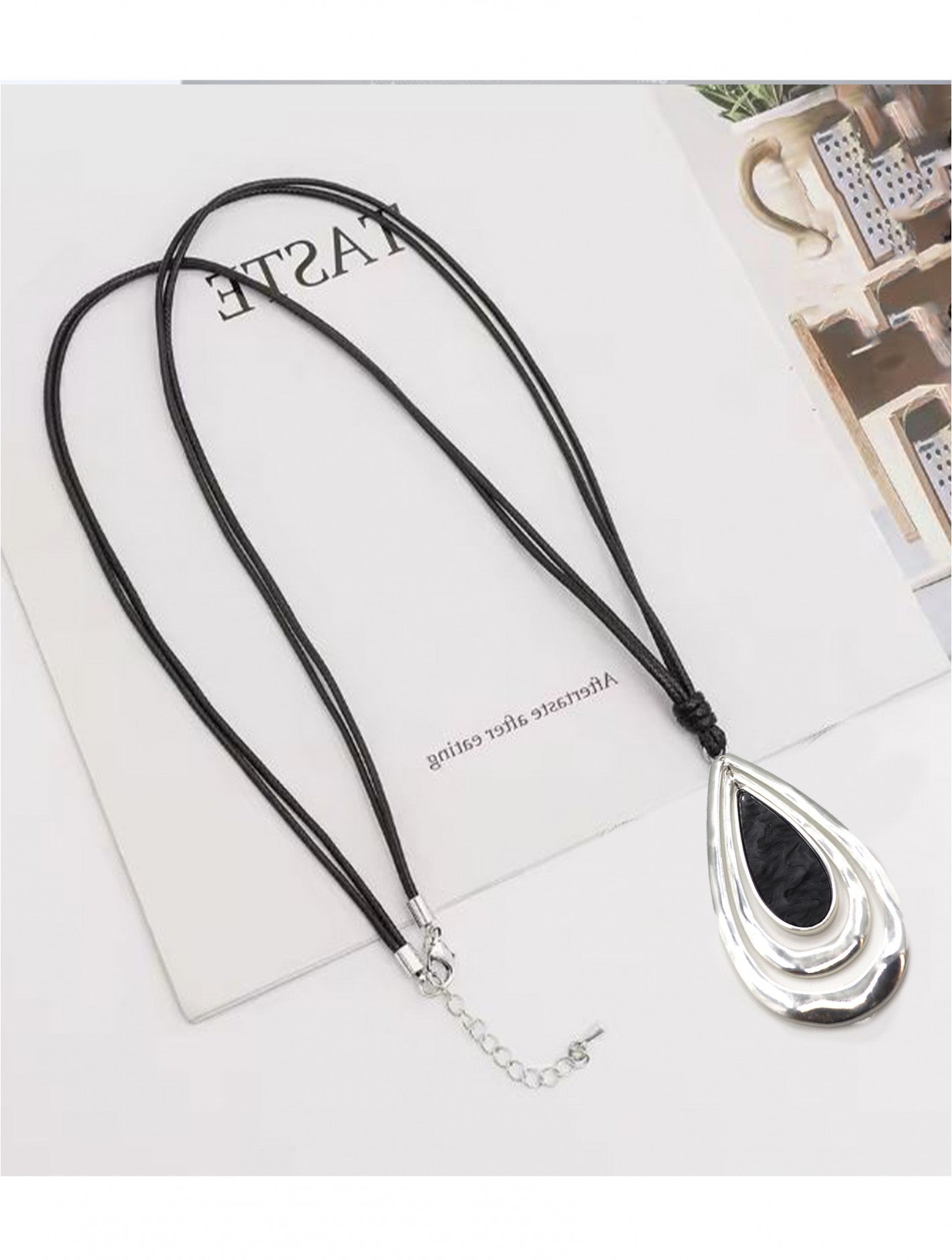 Add a refined and modern touch to your jewelry collection with the Rope Necklace with Teardrop Pendant. The sleek and simple drop pendant makes a subtle yet sophisticated statement, perfect for enhancing any outfit. Whether worn casually or dressed up for an evening event, this necklace is versatile enough to complement any occasion.